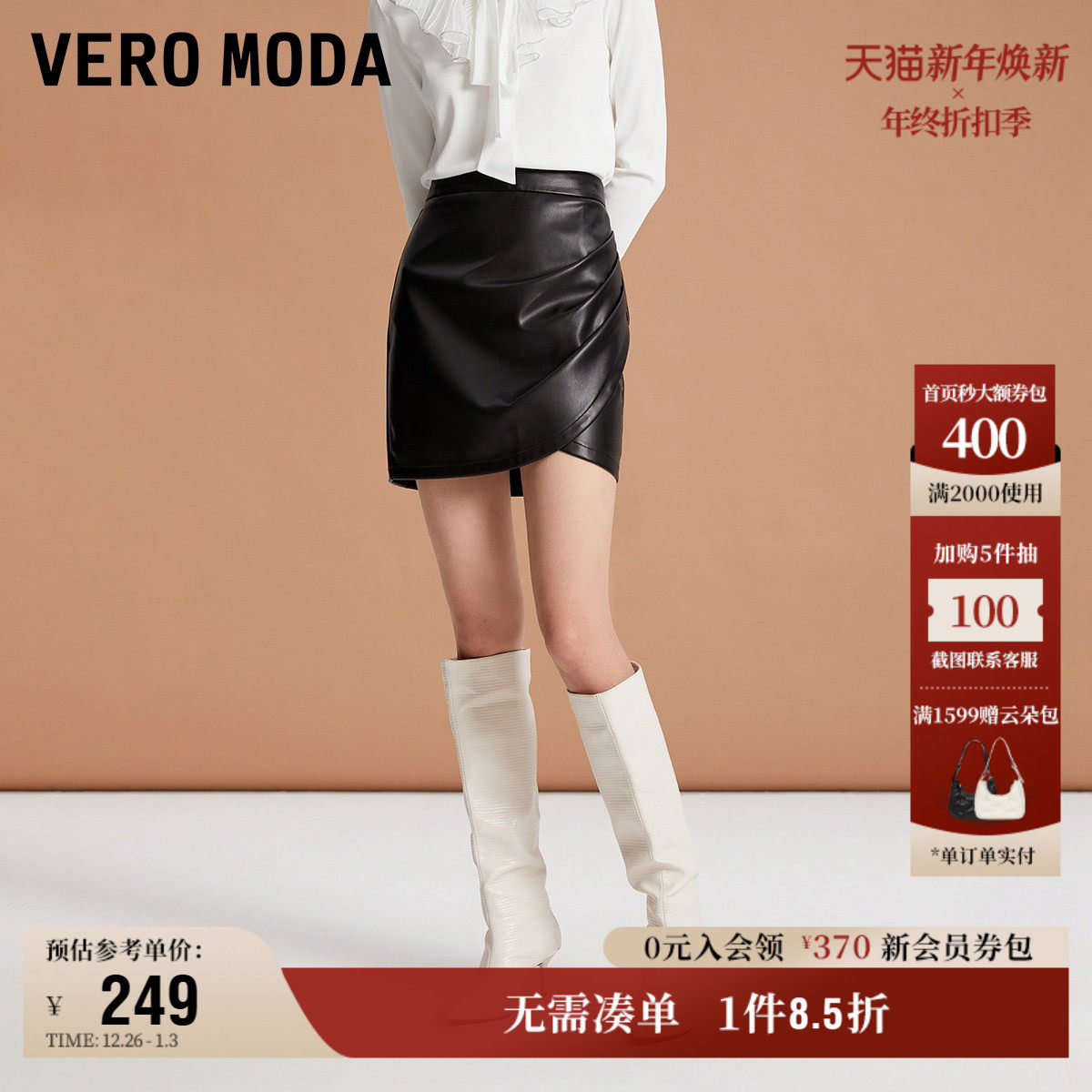 Vero Moda奥莱半身裙秋季新款PU中腰褶皱修身显瘦气质短裙子流行