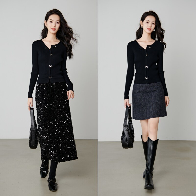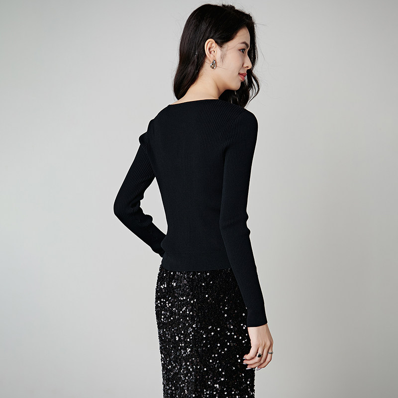 晚白2026年春新款纯色圆领上衣复古工业利落修身针织衫女