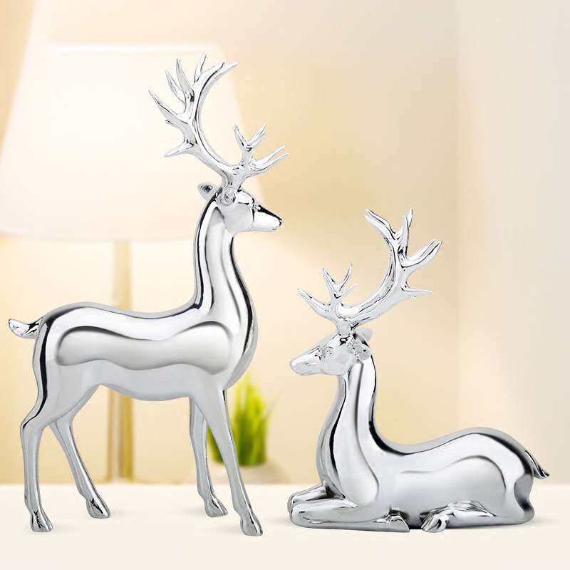 欧美风格家饰电镀情侣糜鹿树脂工艺品摆件客厅电视柜酒柜家居摆设