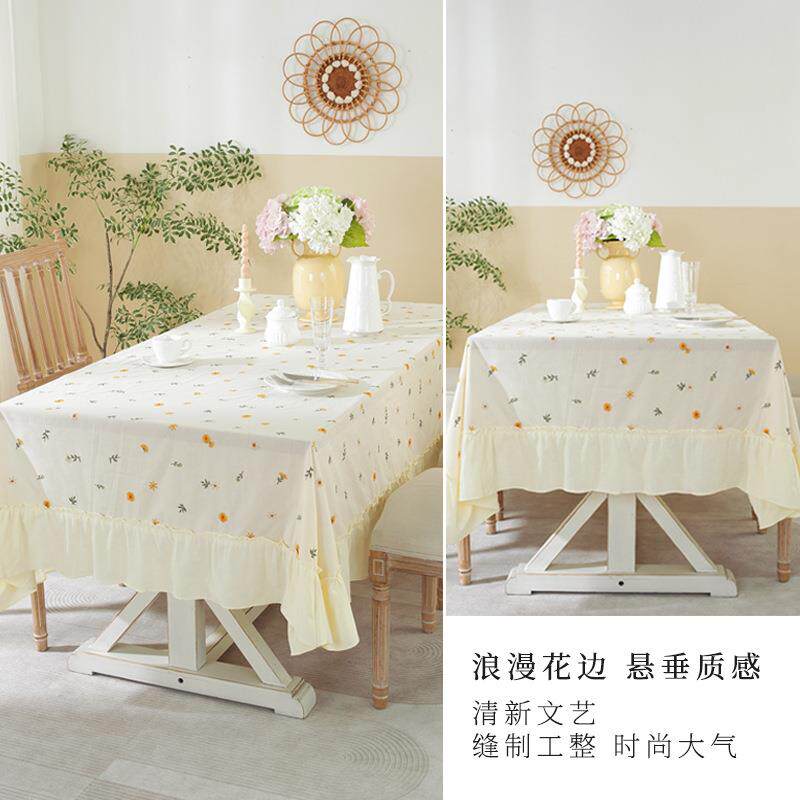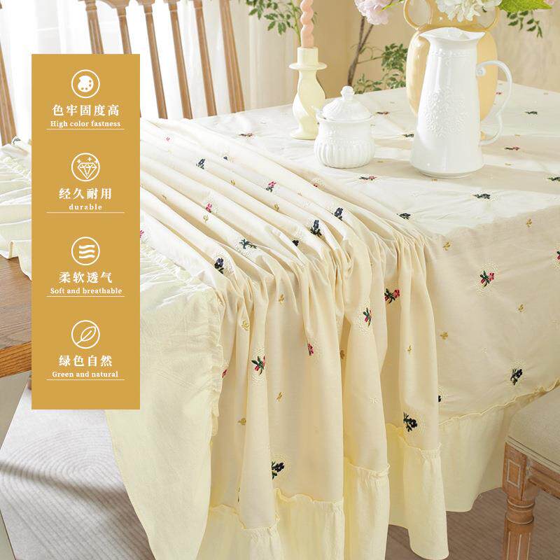 小白鼠家饰绣花餐桌布艺花园餐厅适用长方形圆形绣花桌布盖巾