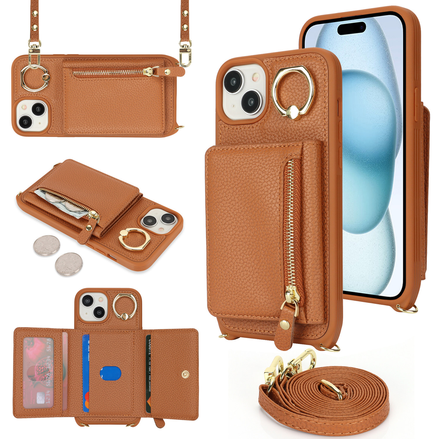 苹果16挂绳手机壳适用苹果iPhone15/14pro手机壳卡包13promax保护套斜挎女款拉链12零钱包翻盖收纳支架11插卡