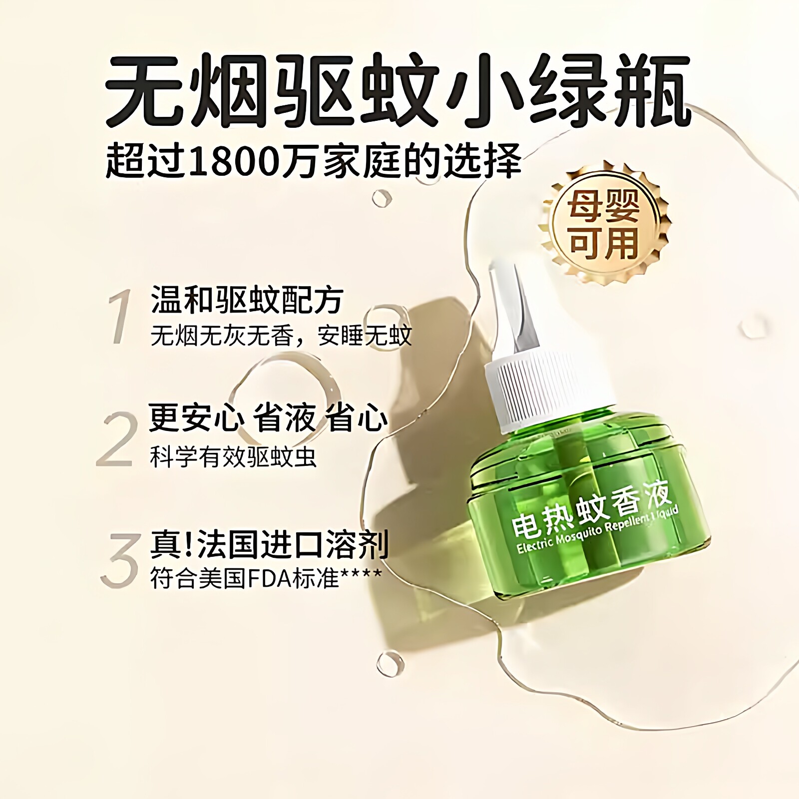 电热蚊香液家用插电式驱蚊液无烟无味婴儿专用补充液回购加热器