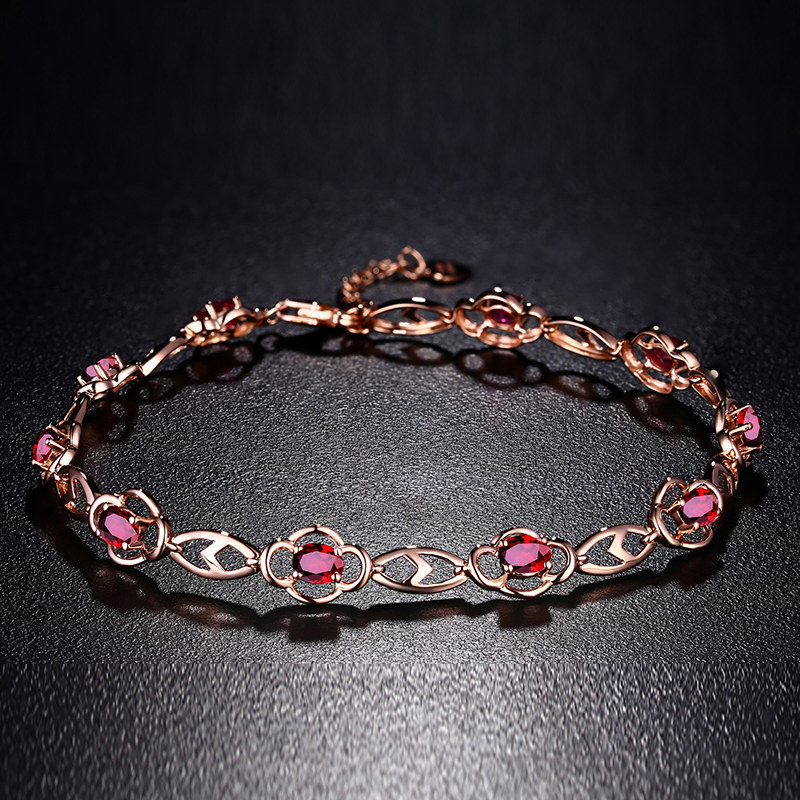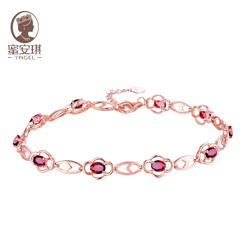 Yngel/蜜安琪2.24克拉天然红宝石手链女18K金镶嵌彩色宝石手链