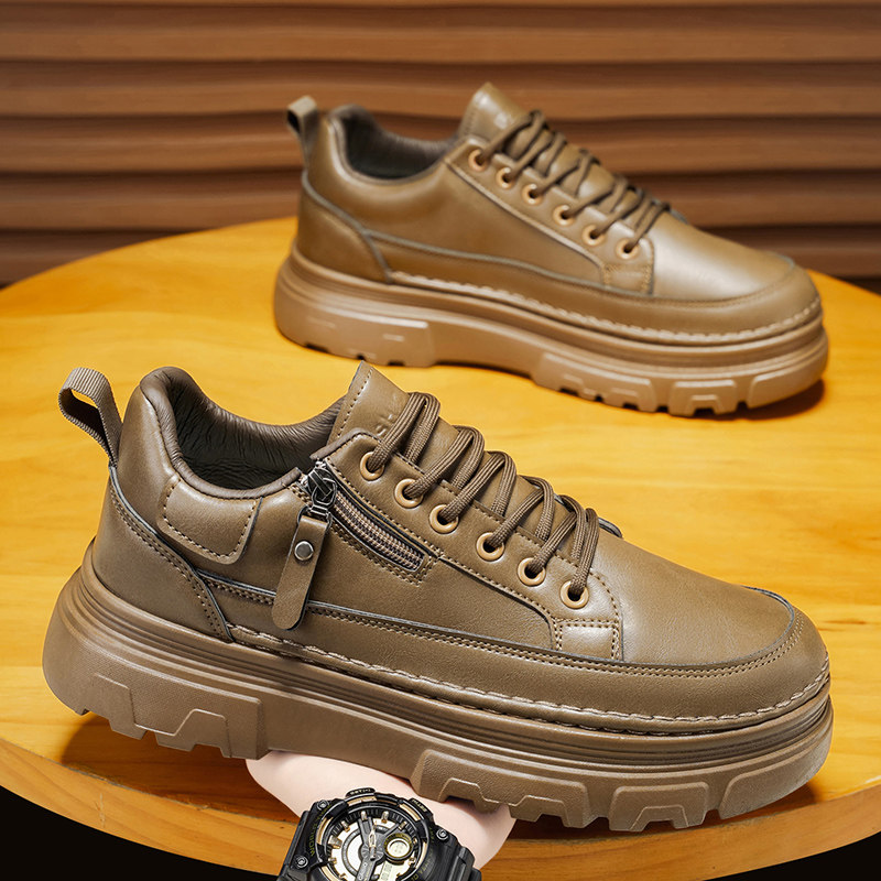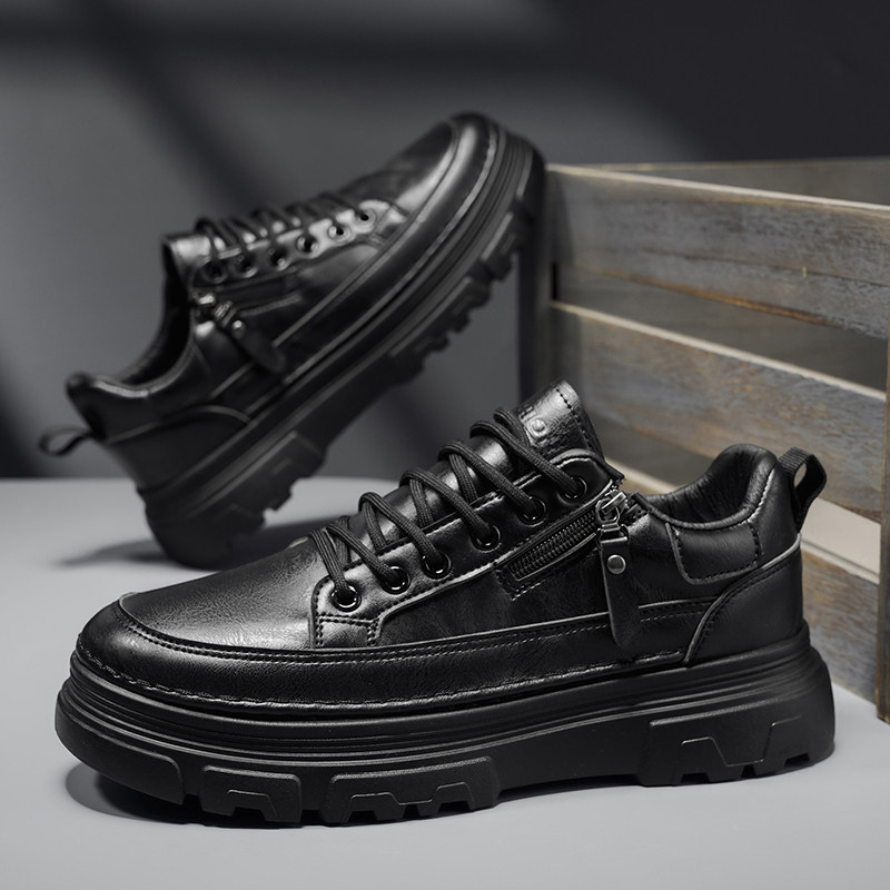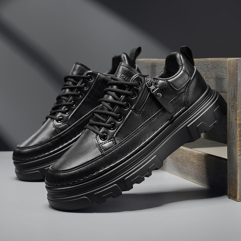 【小牛皮】青润chioryn袋鼠鞋男黑色真皮增高厚底休闲通勤风皮鞋