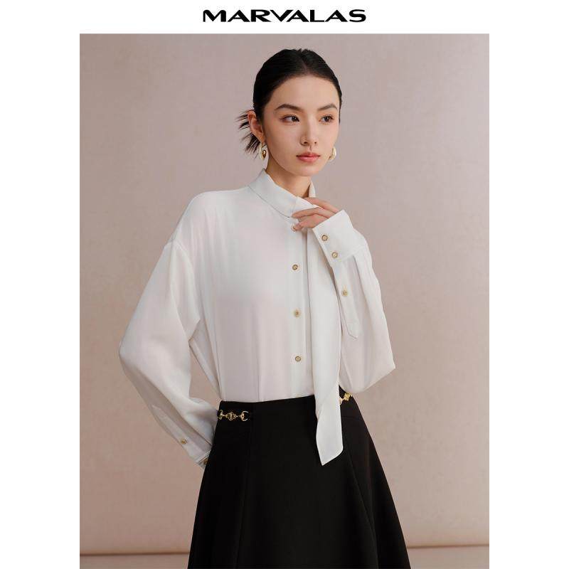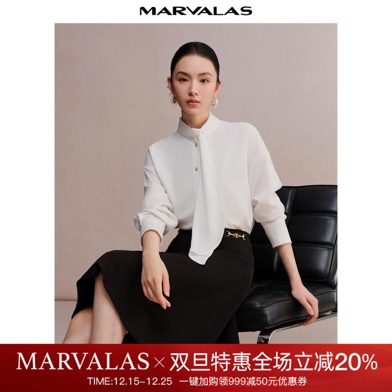 曼德诗设计感白衬衫2025冬季新款纯色时尚抗皱雪纺OL通勤衬衣