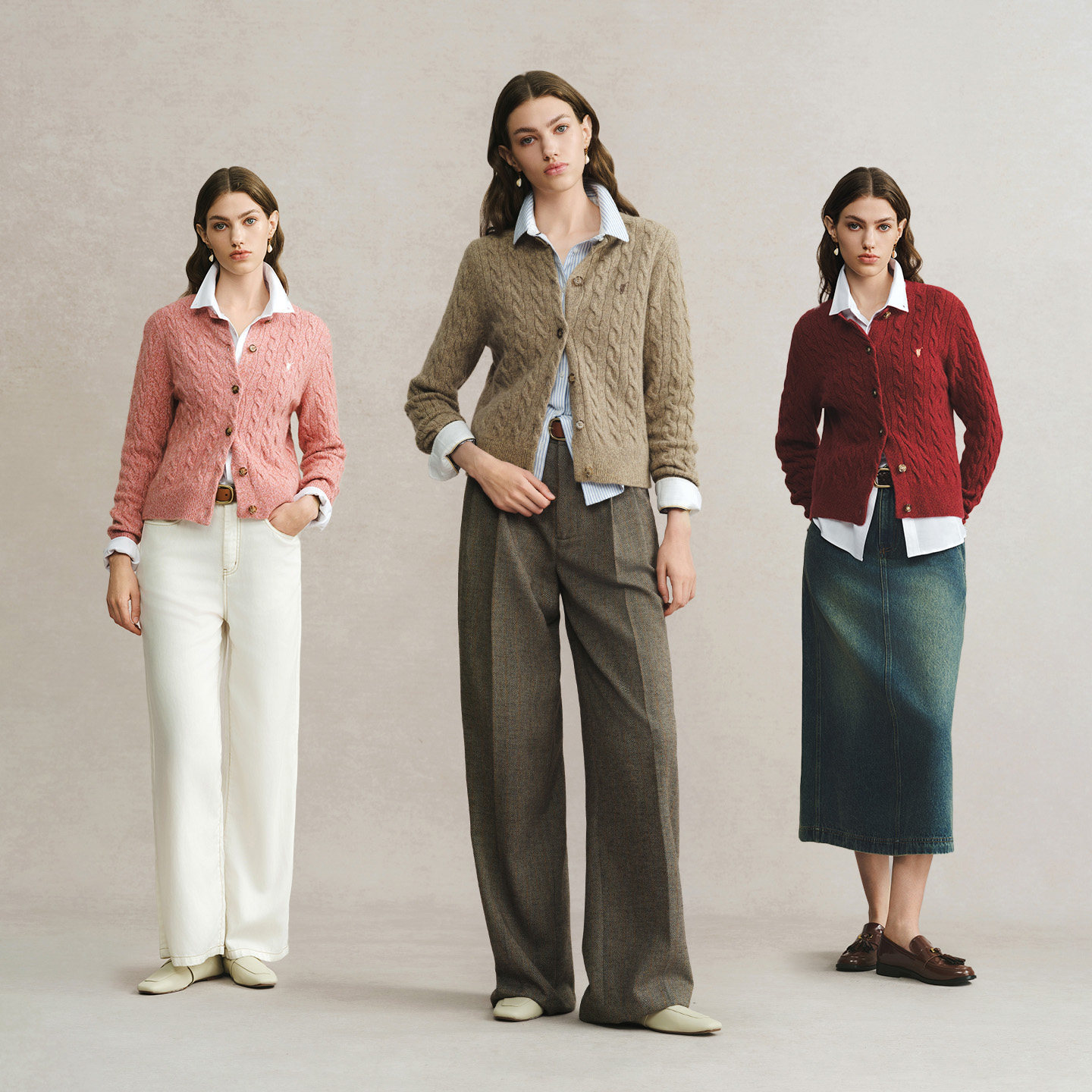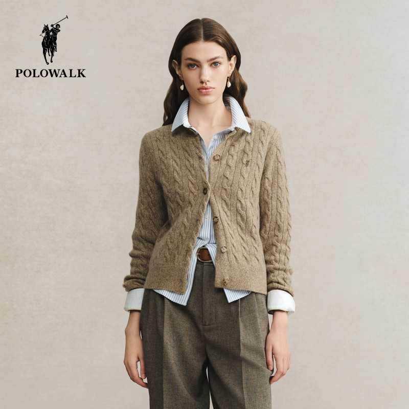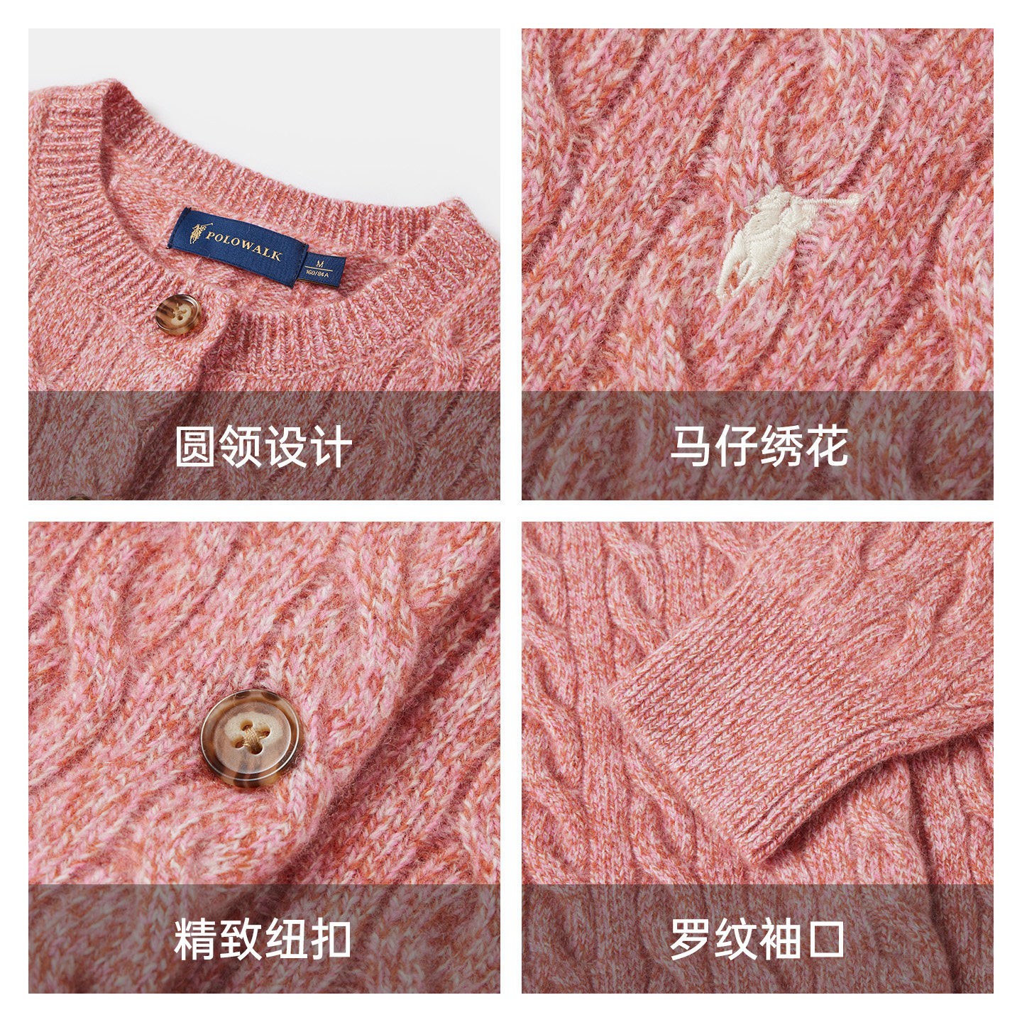 【特惠】POLOWALK女士针织衫红色毛衣秋冬绞花毛衣女新年红外套