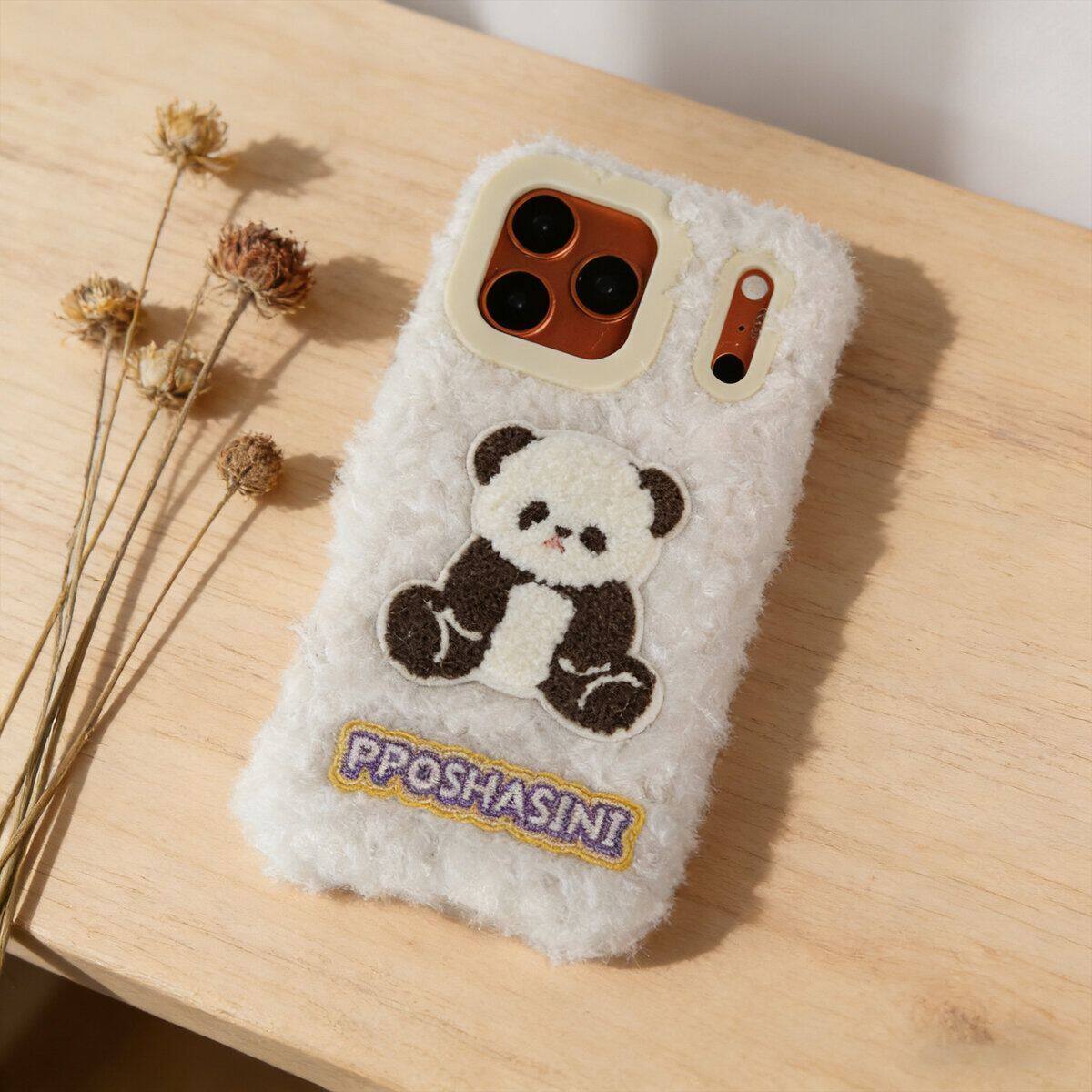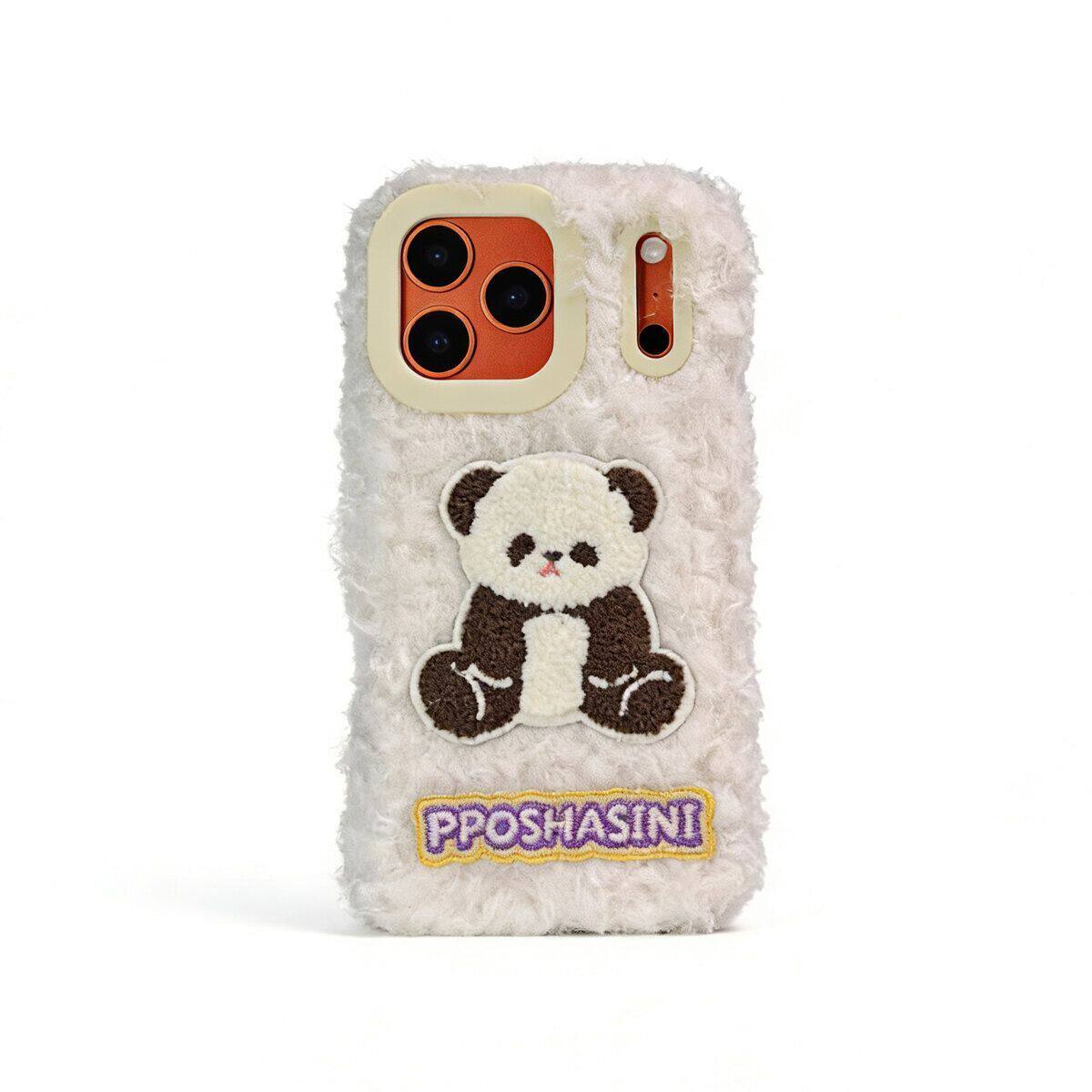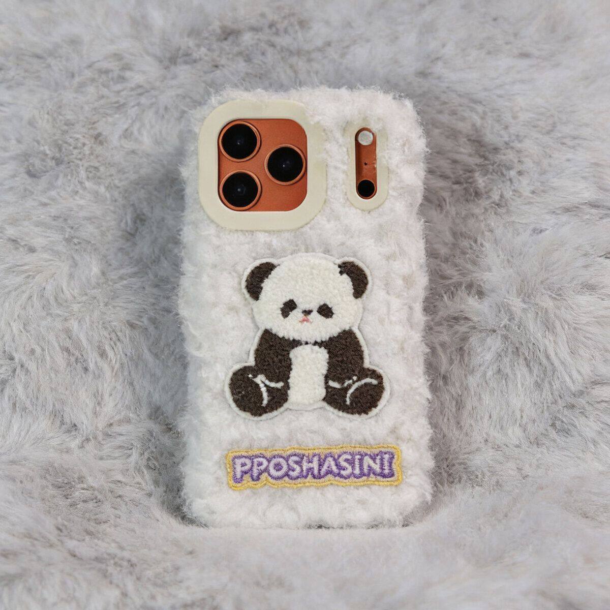 秋冬天毛绒奶白熊猫适用苹果15系列手机壳新款iphone16pro,promax