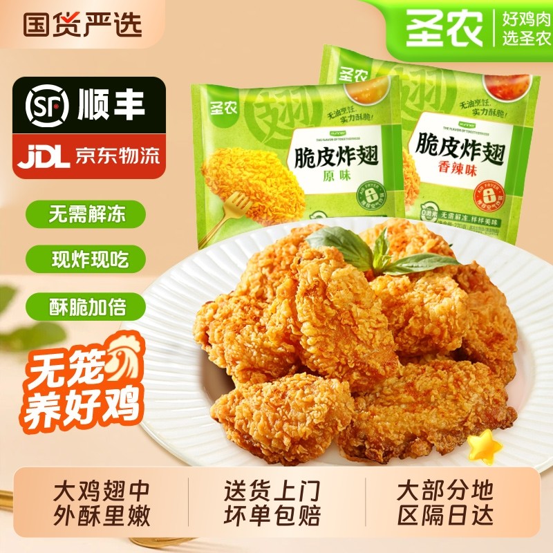 圣农脆皮炸翅香炸鸡翅中空气炸锅半成品食材大鸡排肉官方美食旗舰
