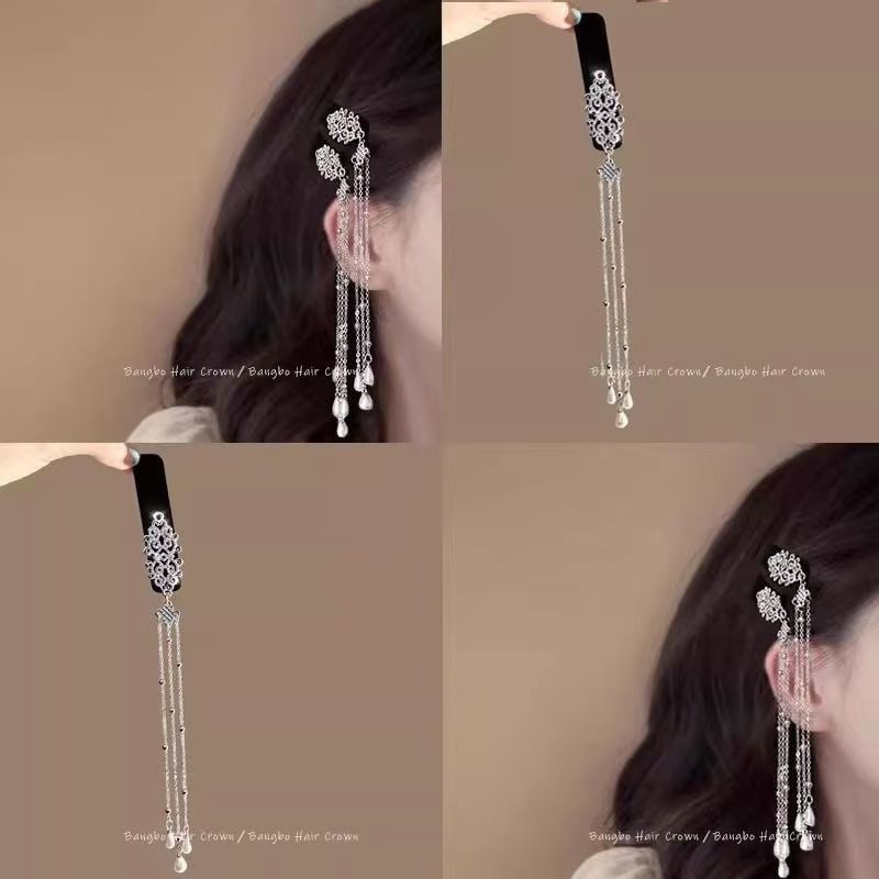 银色山泉 水滴流苏发夹民族风侧边夹长款刘海夹蒙古族发饰女