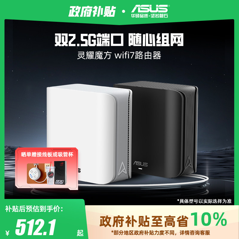【政府补贴10%,全国可领】华硕灵耀魔方WiFi7分布式子母路由器家用无线千兆全屋WiFi套装游戏电竞穿墙路由器
