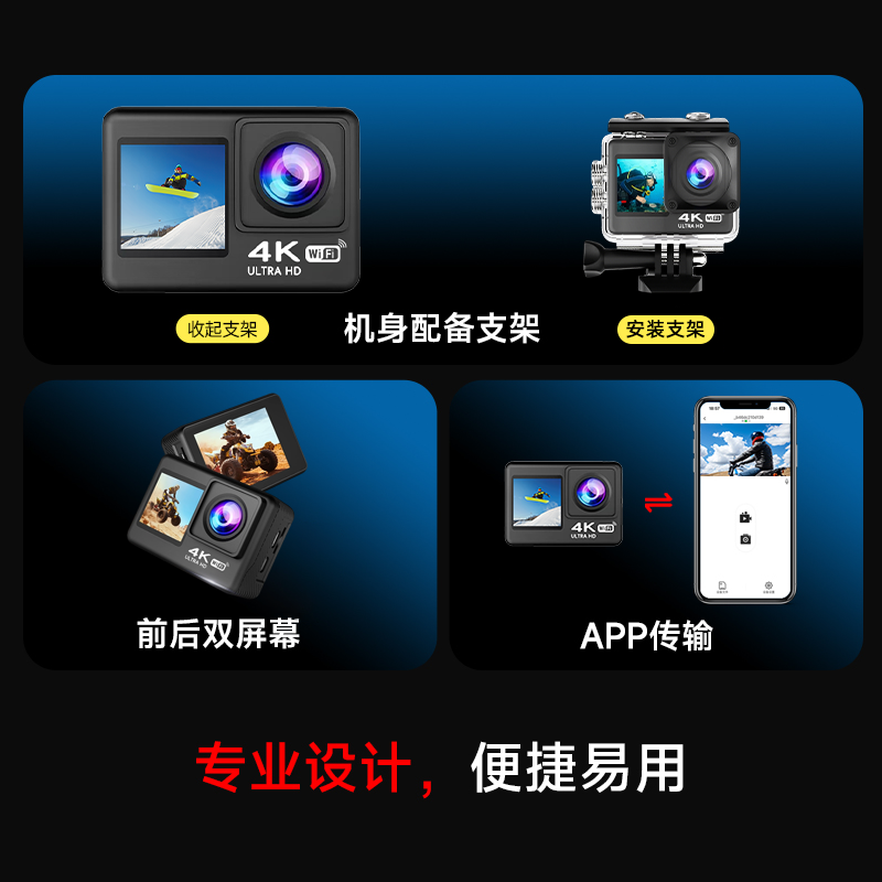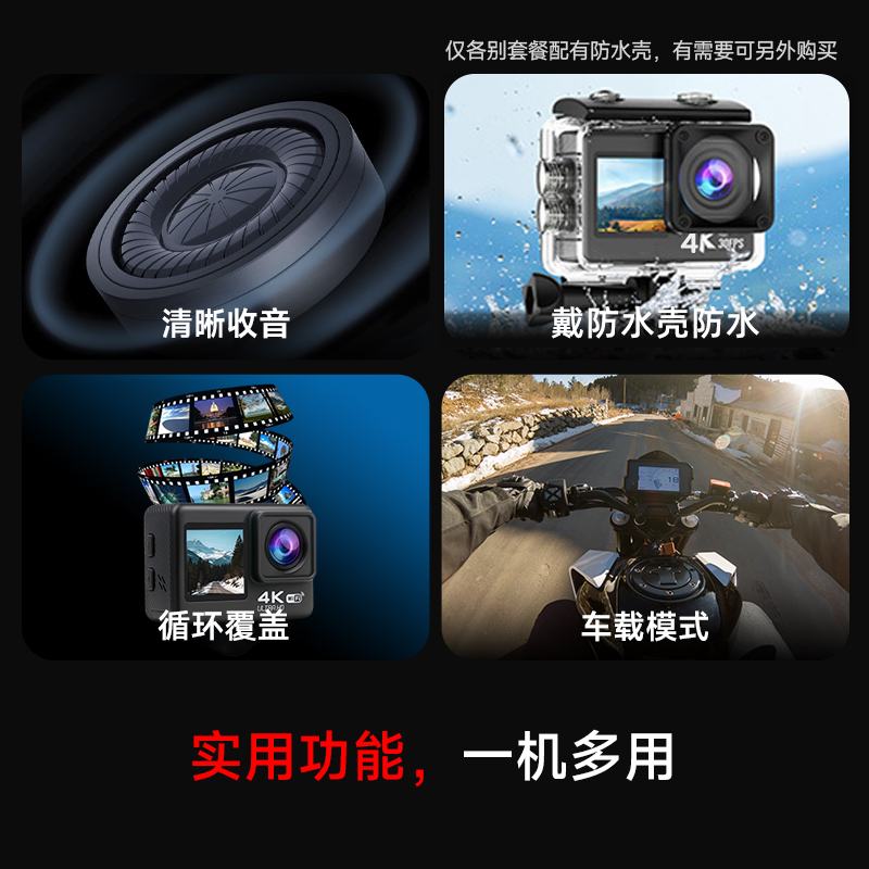 BOQY运动相机vlog高清4K头盔骑行摄像水下摩托车记录仪胸前固定