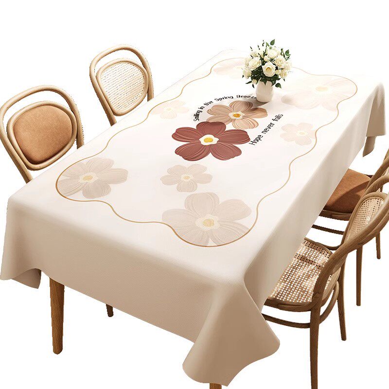2025轻奢高级感小羊皮桌布免洗防水防油防温馨小花桌布长方形台布