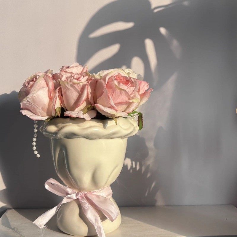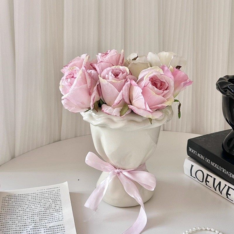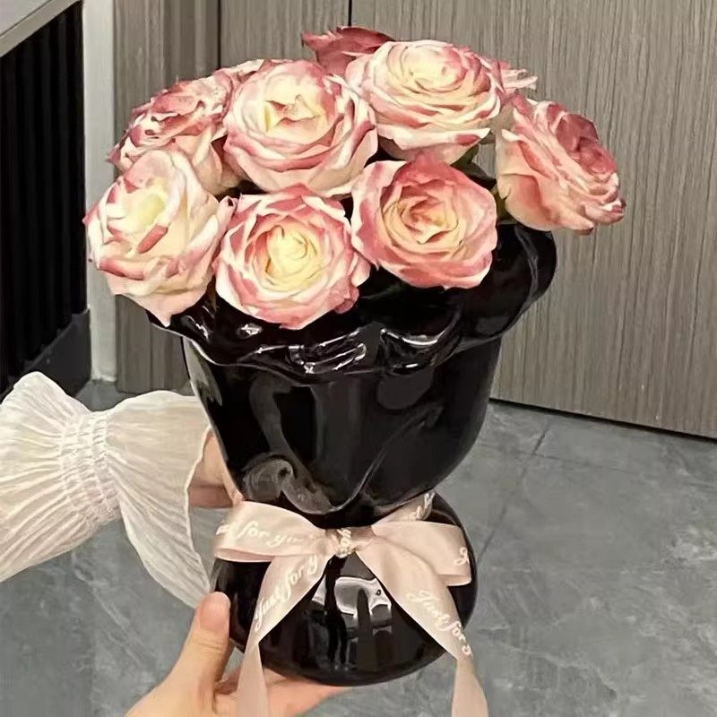新家的100个快递陶瓷花瓶摆件客厅插花瓶奶油风手捧花束造型装饰