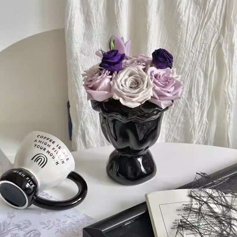 简约现代中古小众玻璃花瓶黑色水养鲜花客厅创意高级装饰插花摆件