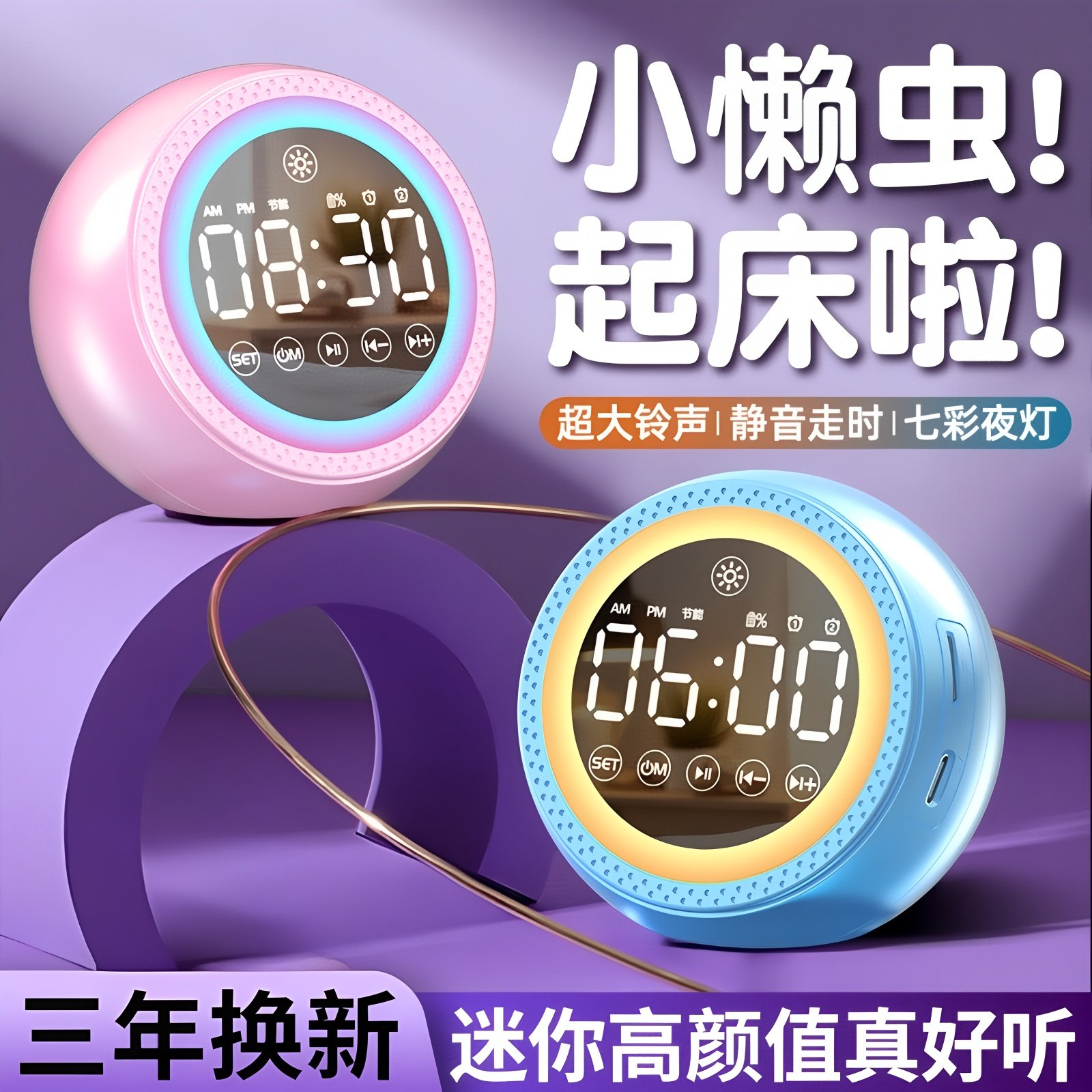 AI智能语音闹钟蓝牙音箱带夜灯低音炮多功能学生闹铃手机电脑音响
