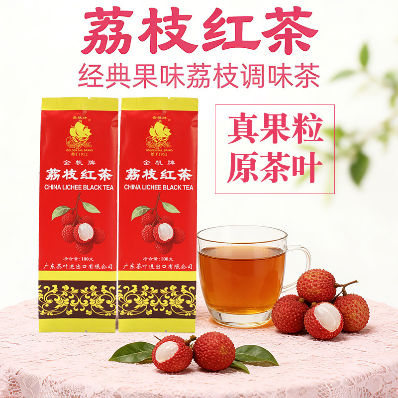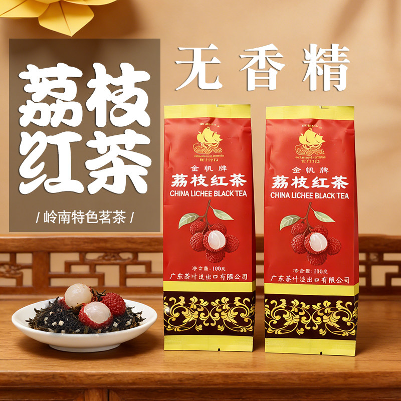 金帆牌中国荔枝红茶茶叶岭南特色茗茶100g广东老字号真果肉