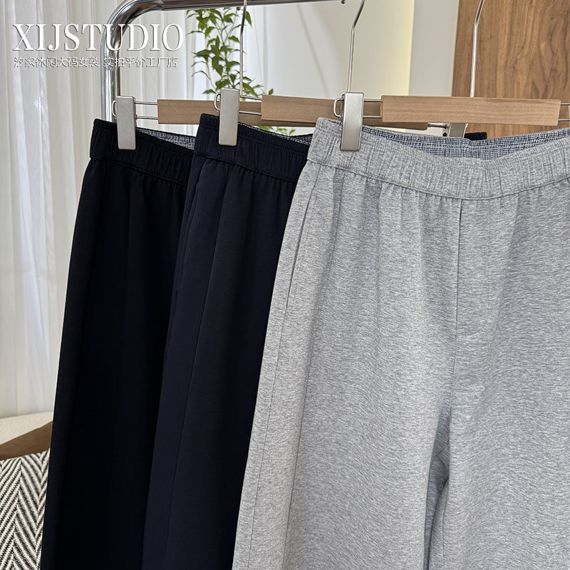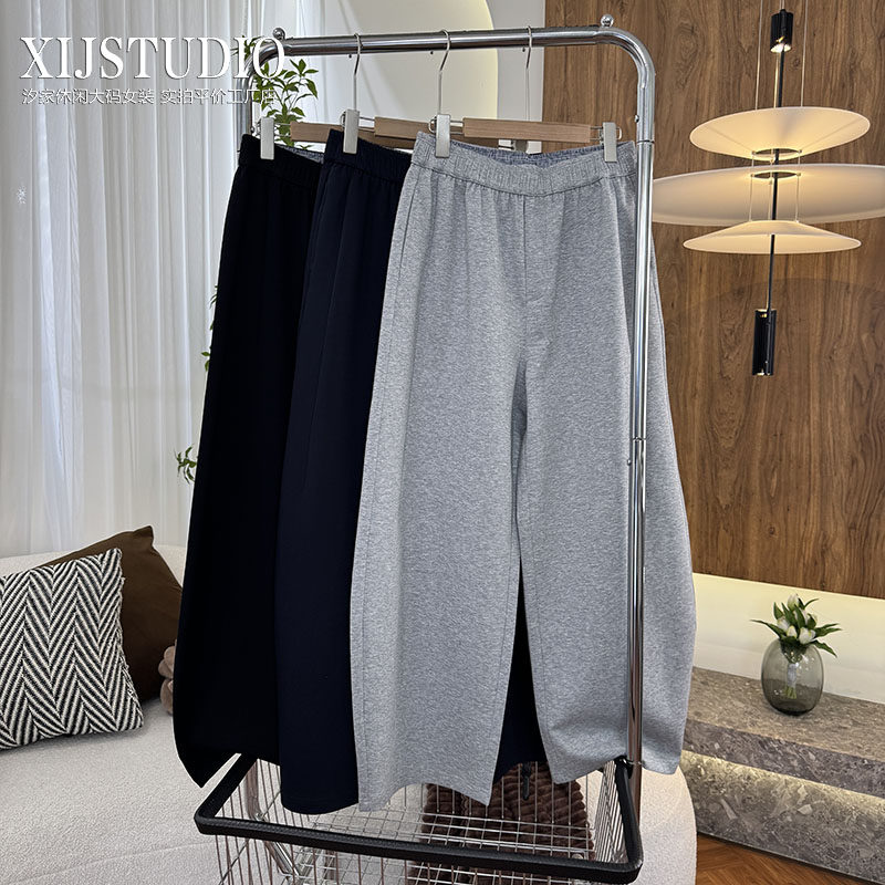 汐家女裤 春季新款松弛感弯刀裤女大码皮马棉宽松阔腿休闲裤