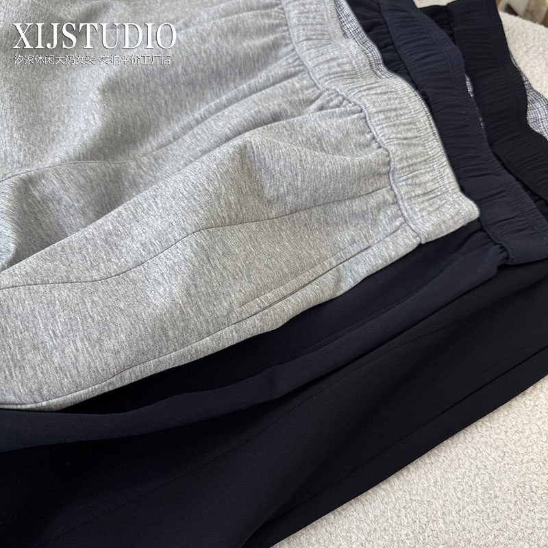 汐家女裤 春季新款中弹松紧高腰休闲哈伦裤女大码宽松老爹裤
