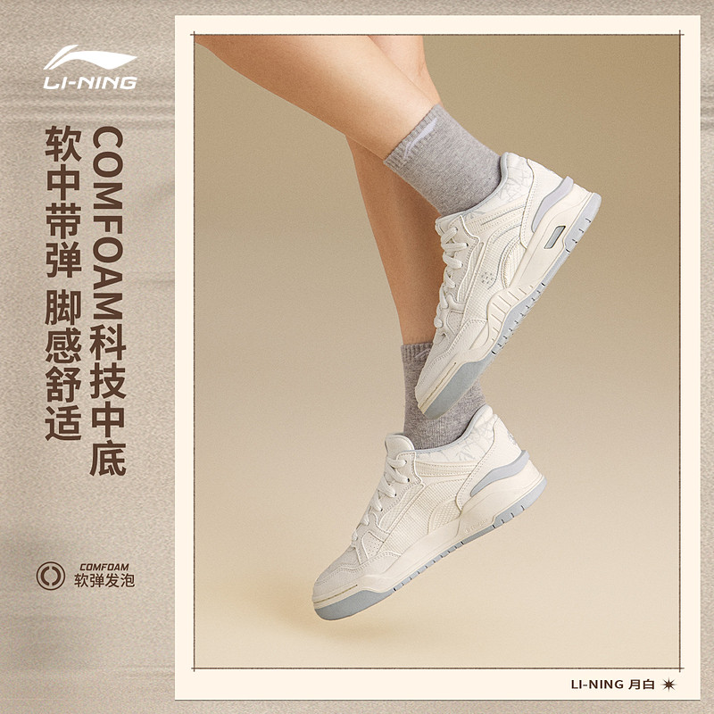 李宁休闲鞋 月白2 MID 男女款柔软舒适防滑耐磨中帮经典休闲鞋