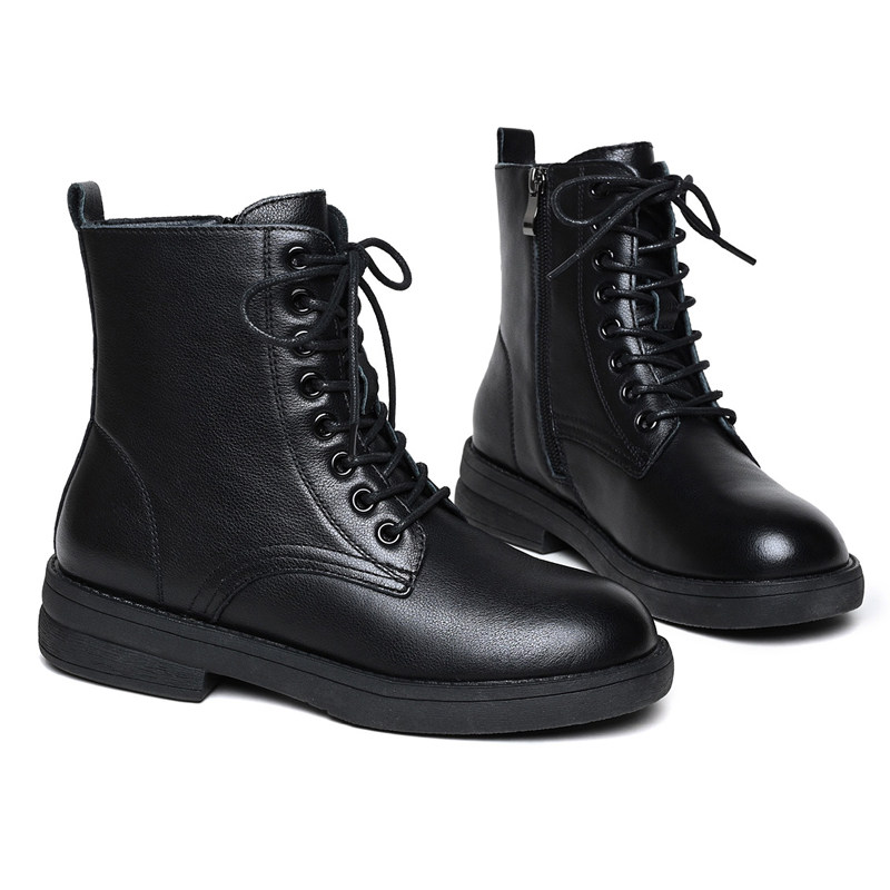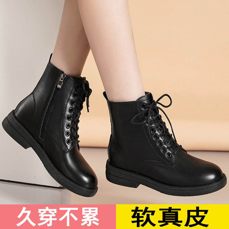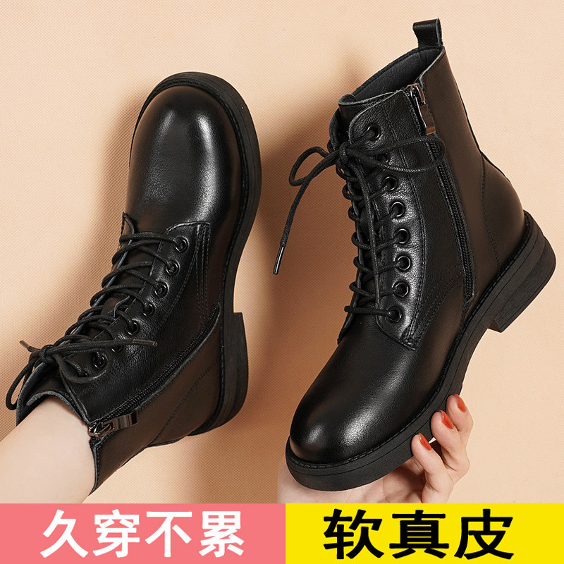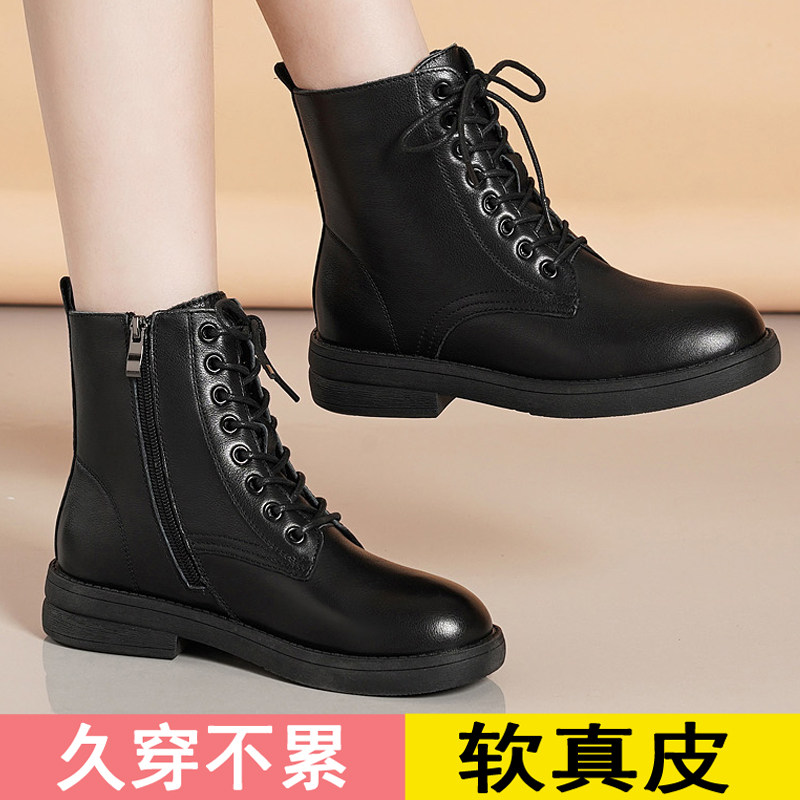 真皮马丁靴女款2025新款秋冬软底软皮短靴平底时尚百搭女靴子中筒