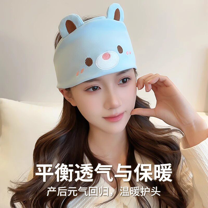 月子帽孕妇冬发带护额头防风产妇帽女产后大头围头巾睡觉帽子三件