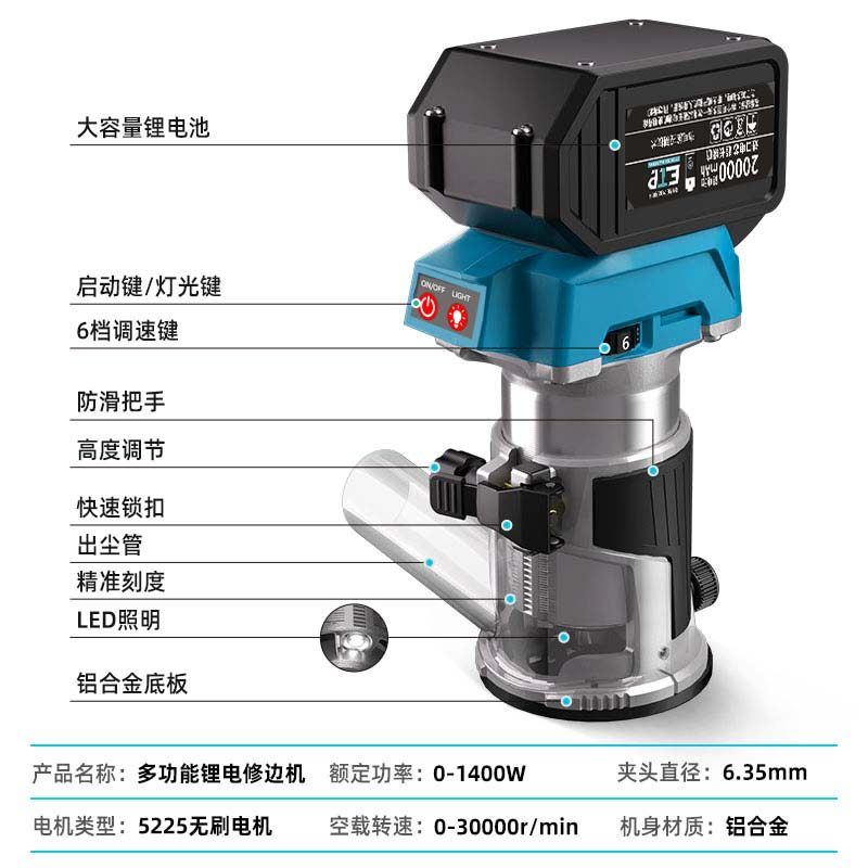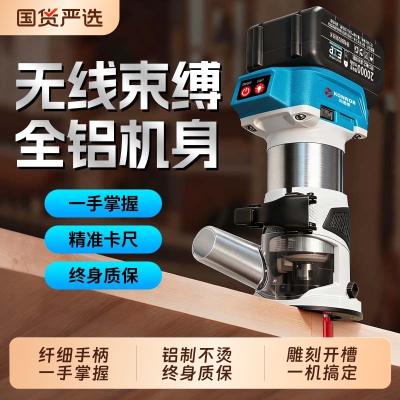无刷锂电修边机充电式多功能木工木铣开槽机铝塑板雕刻机调小锣机