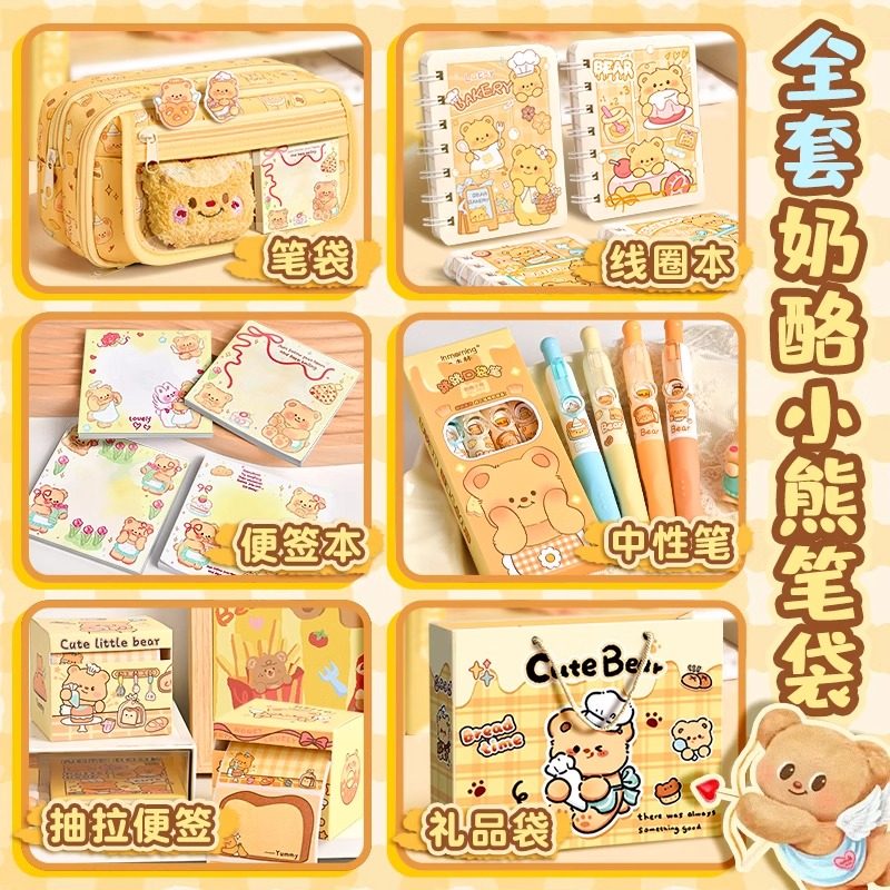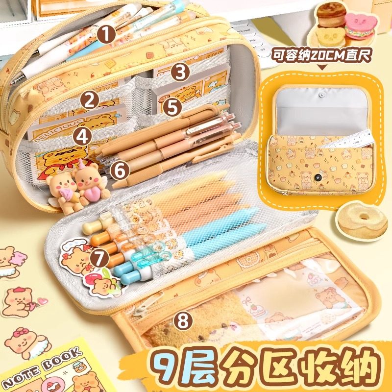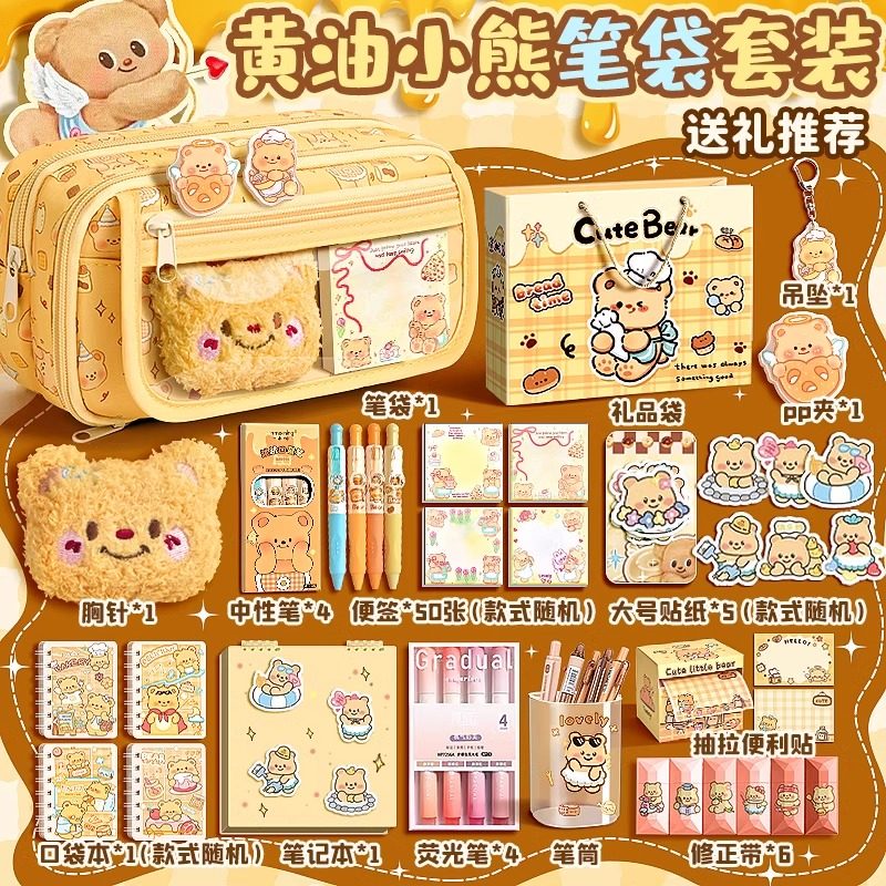 黄油小熊笔袋大容量女生高颜值ins风铅笔盒2025新款超火文具盒初中生痛包透明男小学生女童礼物女孩款文具袋