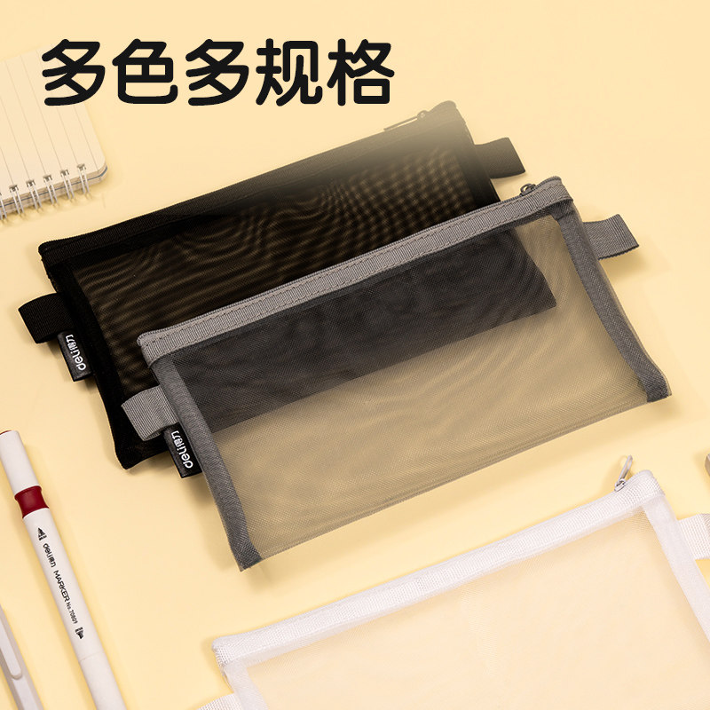 得力简约透明网纱文具笔袋小学生考试专用文具盒文具收纳袋