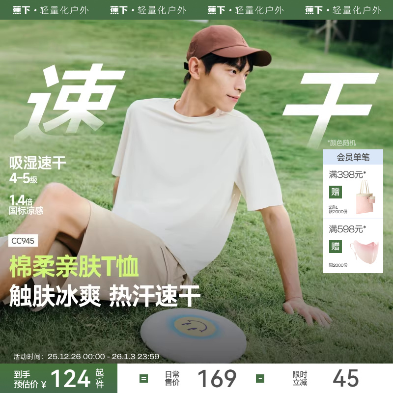 蕉下速干防晒t恤男凉感吸湿散热夏季纯色内搭绵柔打底衫透气短袖