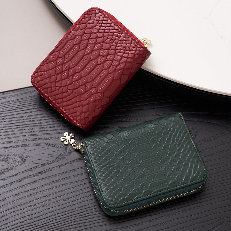 稻草人卡包女士新款证件女式牛皮小巧真皮拉链钱夹小众银行卡钱包