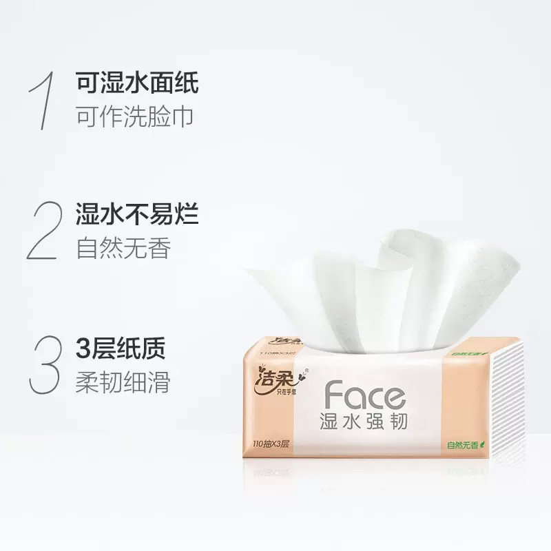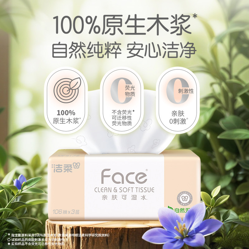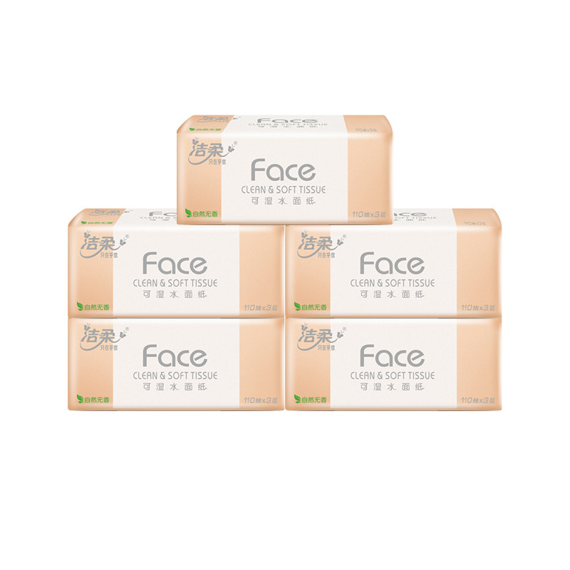 洁柔抽纸粉face无香110抽5包家用实惠餐巾纸卫生纸面巾纸木浆原生
