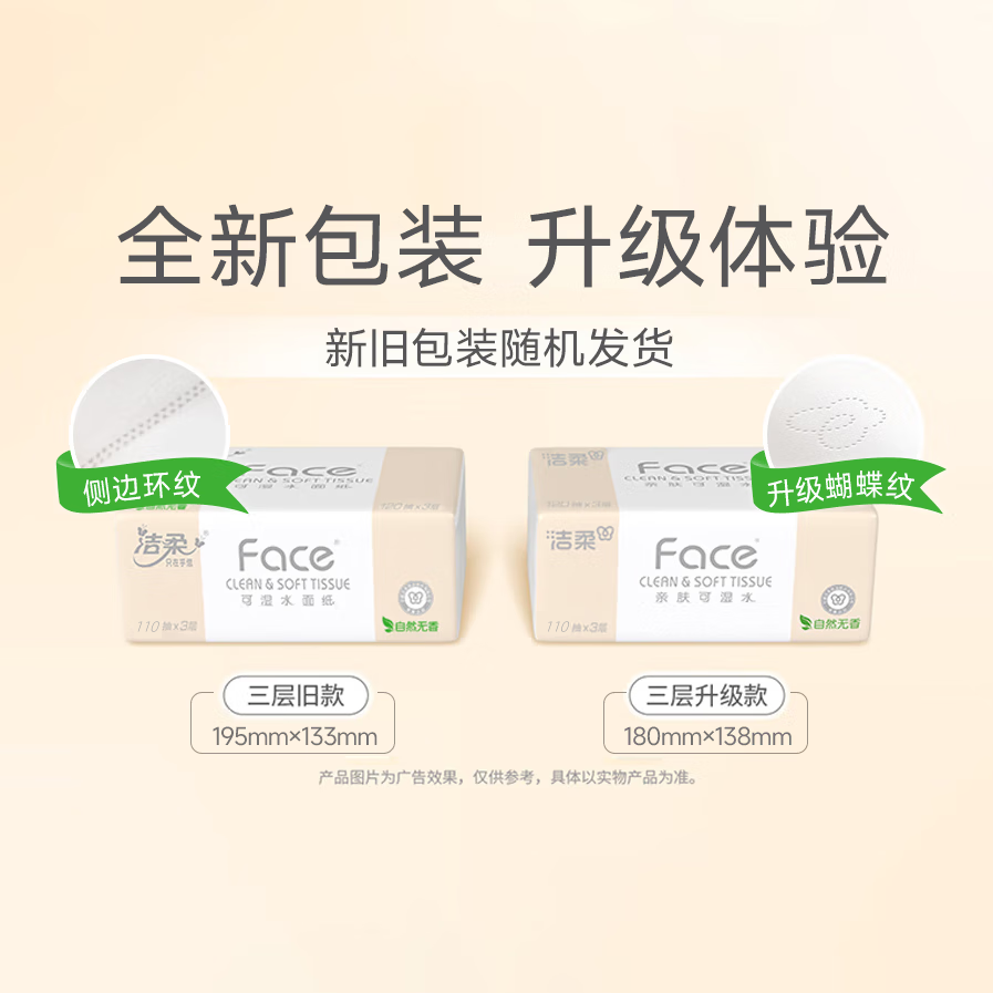 【下拉享优惠】洁柔抽纸立体压花面巾纸软抽3层整箱家庭实惠装