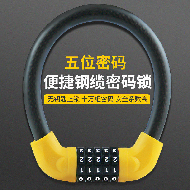 自行车锁防盗山地车链条锁密码锁钢丝锁车锁单车骑行装备配件