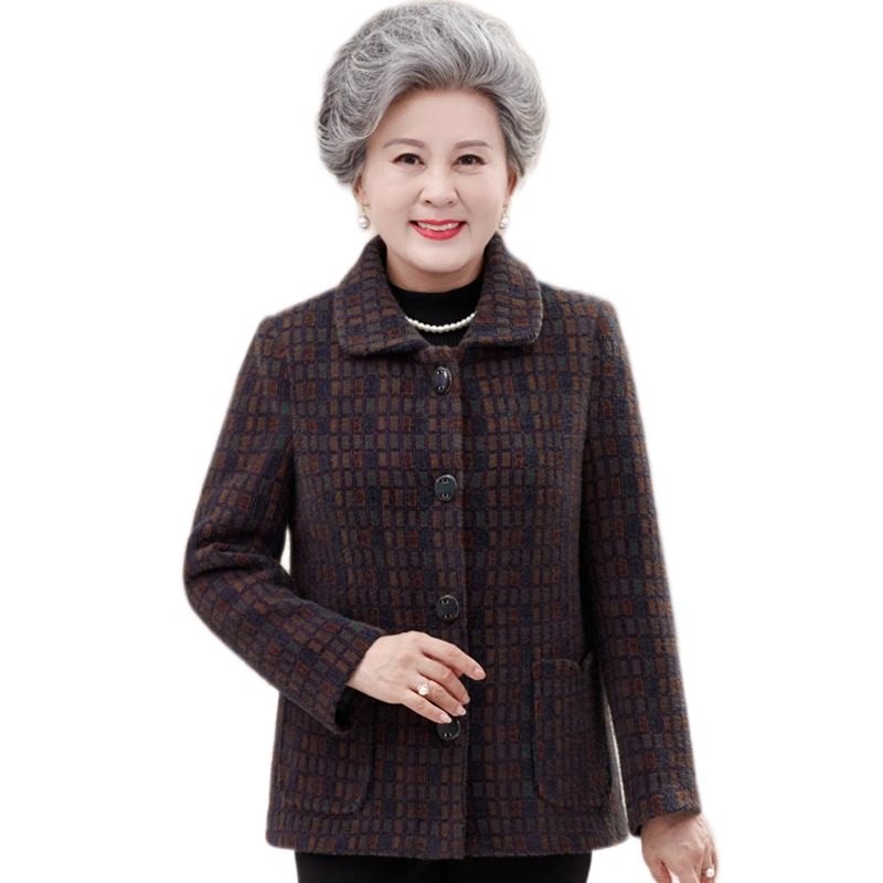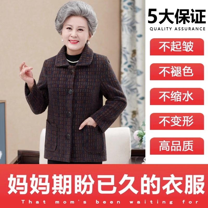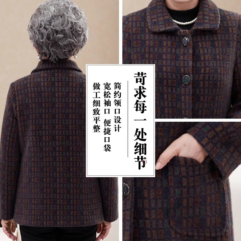 妈妈秋冬季加绒外套女中老年人大码宽松翻领棉衣三层加厚棉服上衣