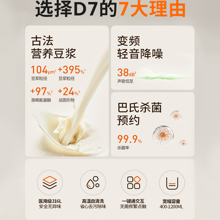 九阳豆浆机家用自动多功能变频轻音破壁机古法烹饪机搅拌料理机D7