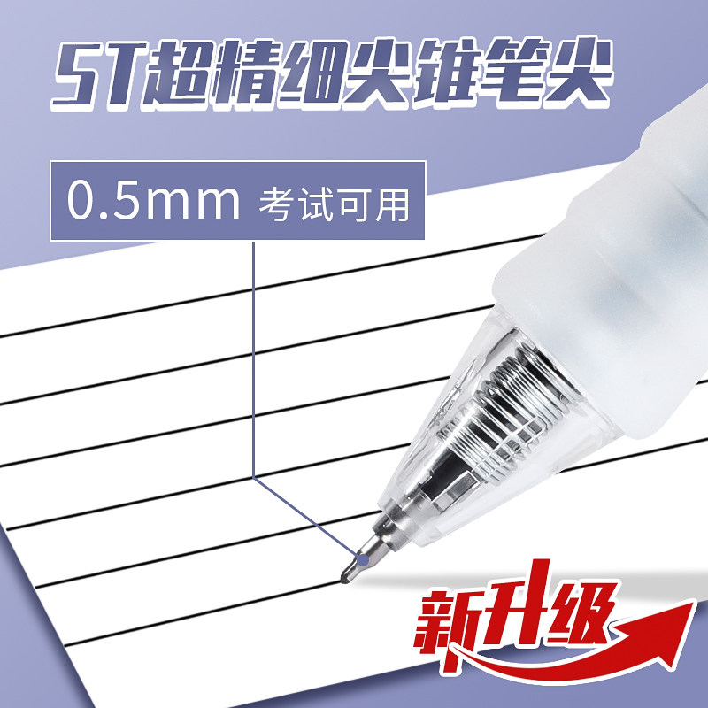 得力刷题笔速干st头透明考试笔考研考公学生用文具黑色0.5刷题备考专用笔中高考高颜中性笔碳素考按动式透明
