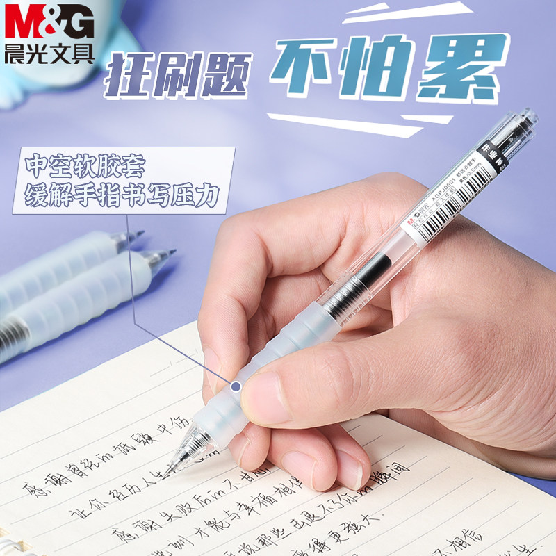 晨光作业神器st笔头按动中性笔agpj0601舒适云握手黑笔红笔速干顺滑刷题专用笔学生用0.5mm按压式水笔碳素笔