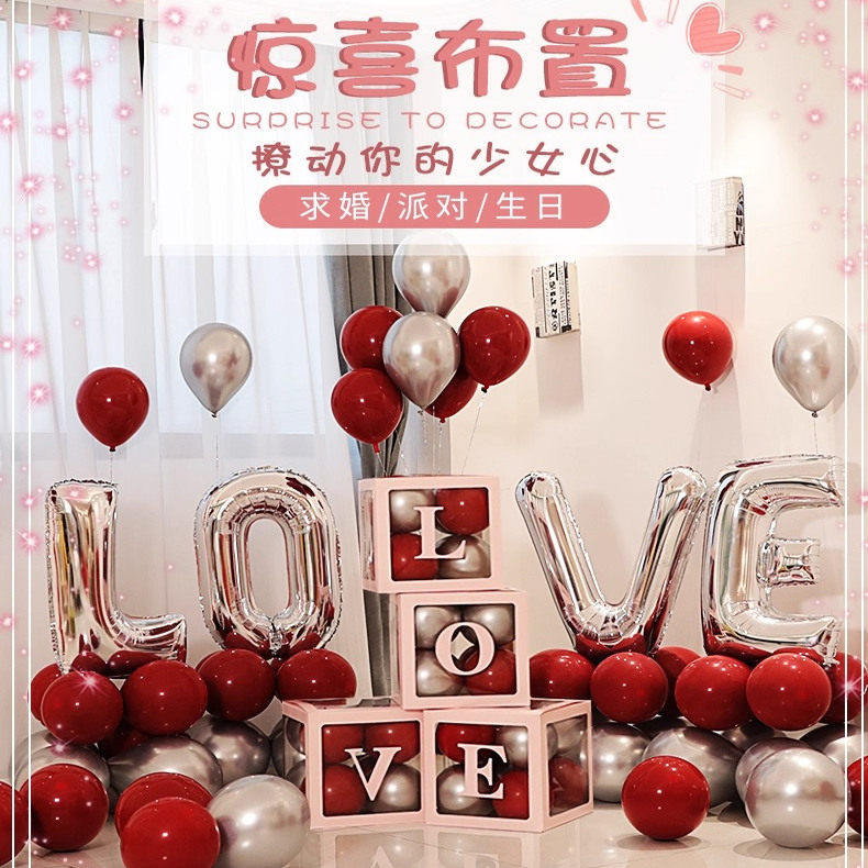 love爱心气球透明盒子结婚表白求婚室内布置氛围场景装饰红色客厅