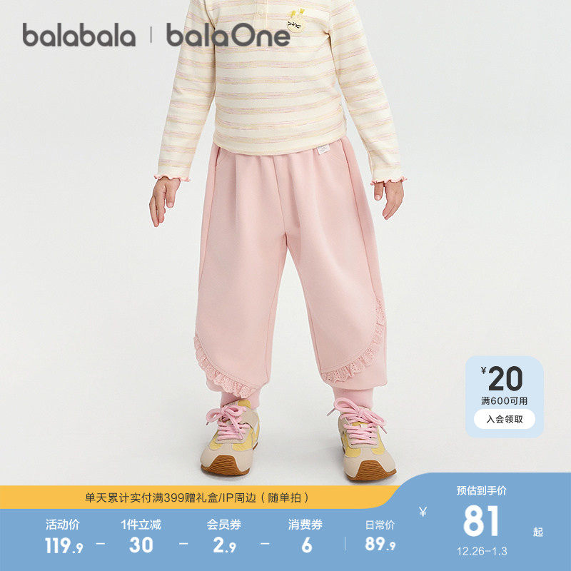巴拉巴拉童装宝宝长裤女童运动束脚裤2025秋装新款儿童裤子甜蕾丝
