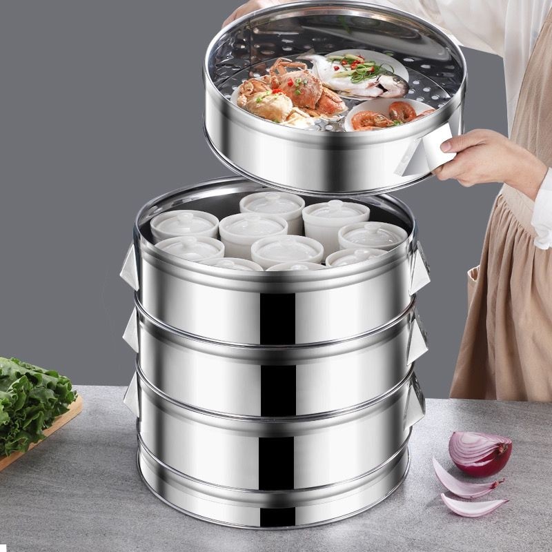 不锈钢锅蒸锅蒸笼家用大容量蒸包子双三多层大蒸锅特大号商用蒸格