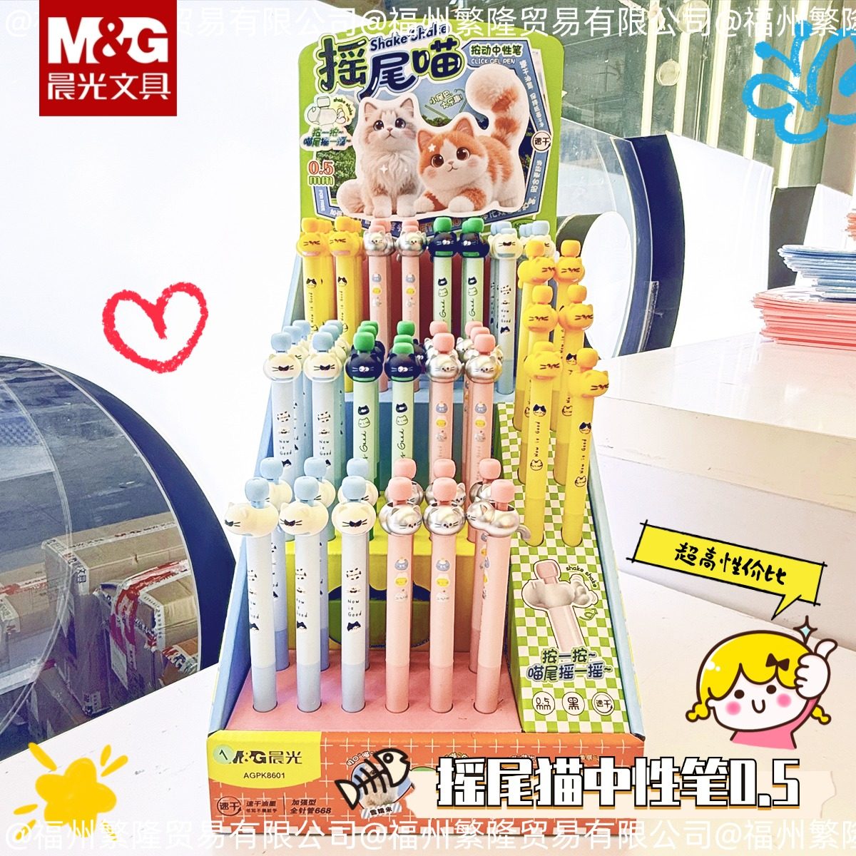 晨光摇尾猫中性笔可爱学生笔0.5mm加强型全针管爆款小众猫咪黑笔