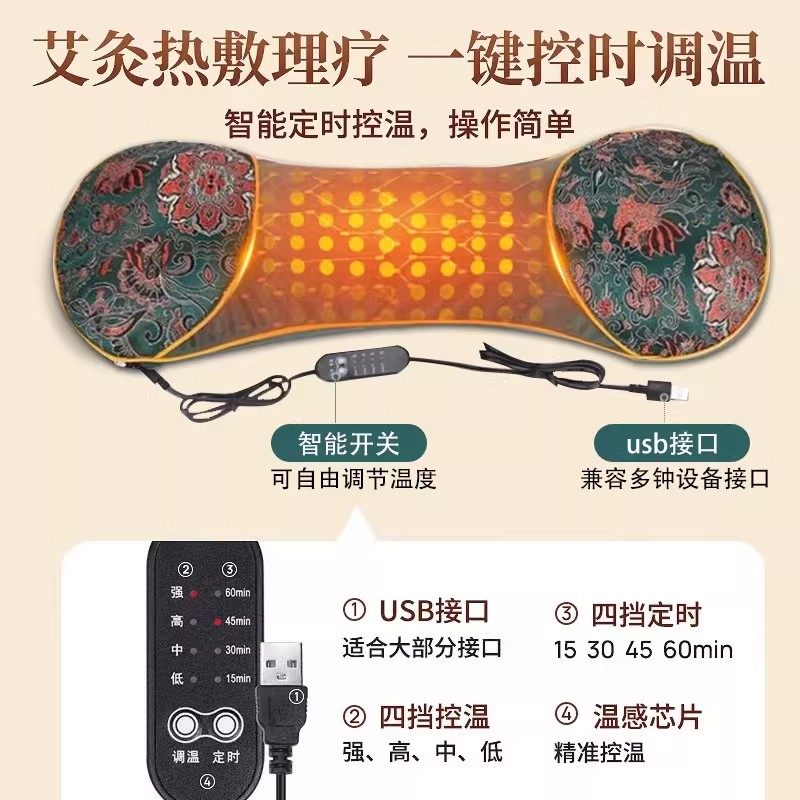 电加热艾草颈椎枕助睡眠护颈椎枕头艾灸枕热敷骨头枕专用发热肩颈