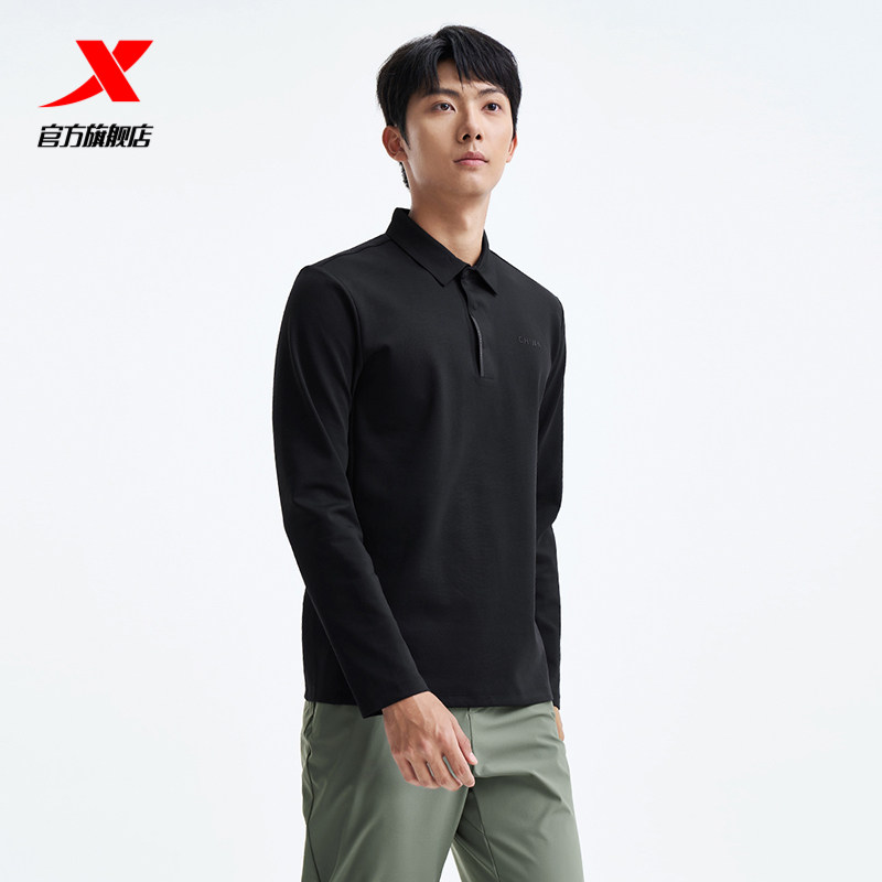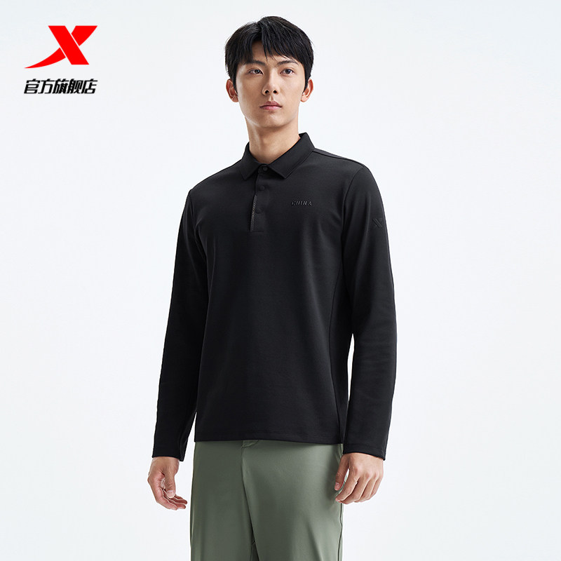 特步长袖POLO衫男款2025秋季新款内搭健身跑步运动服975329040360