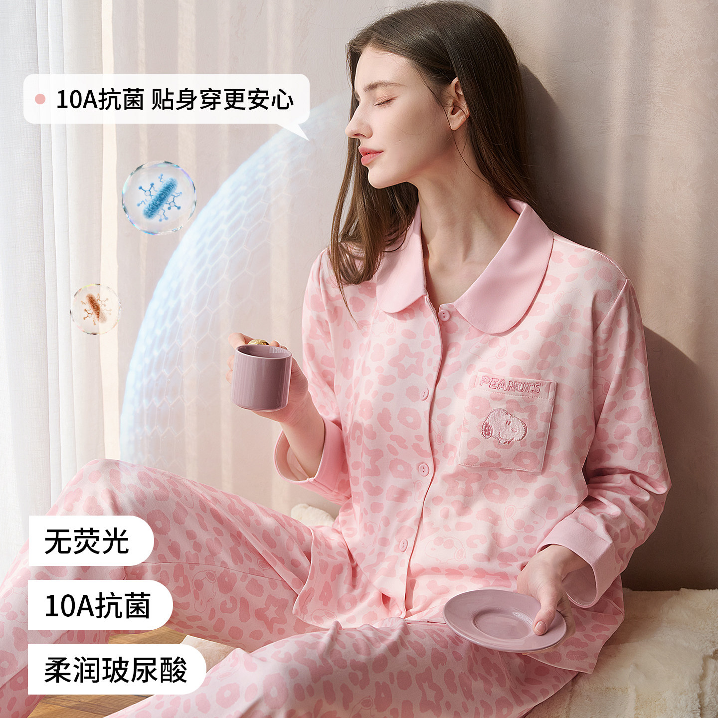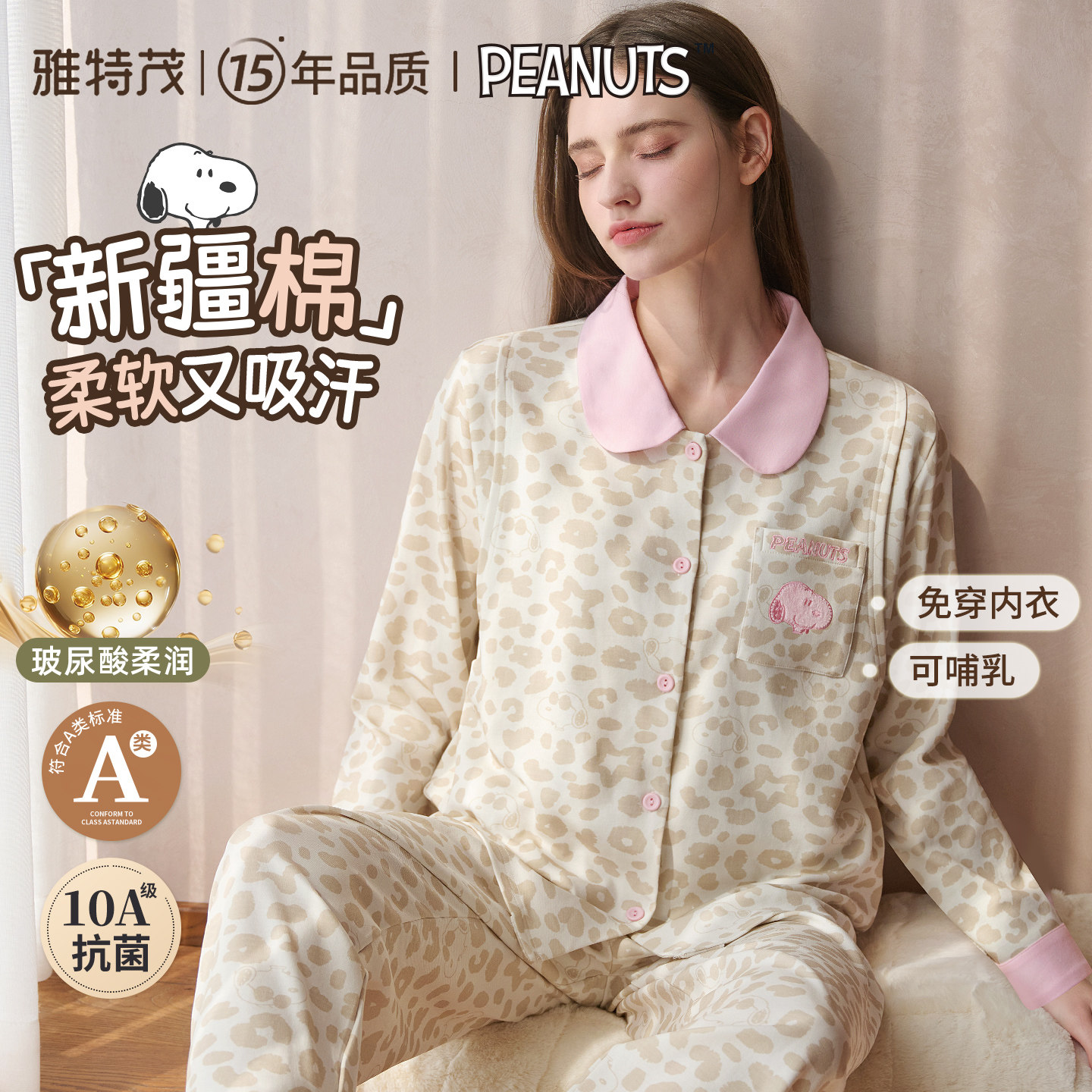 雅特茂&史努比豹纹开衫月子服秋冬孕妇产妇哺乳睡衣孕期家居服