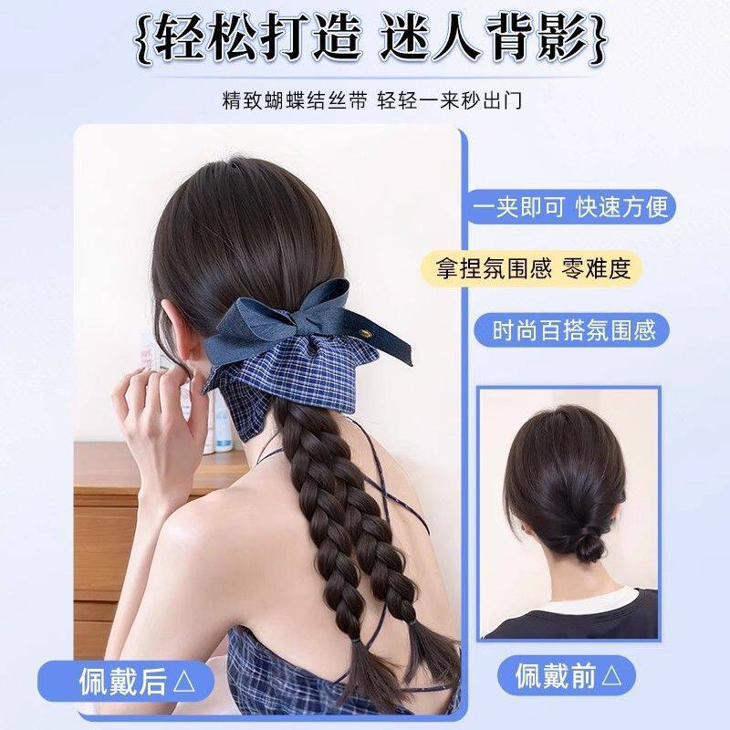 假发辫子马尾蓝蝴蝶结双麻花辫长辫子发饰抓夹低发量少神器高温丝
