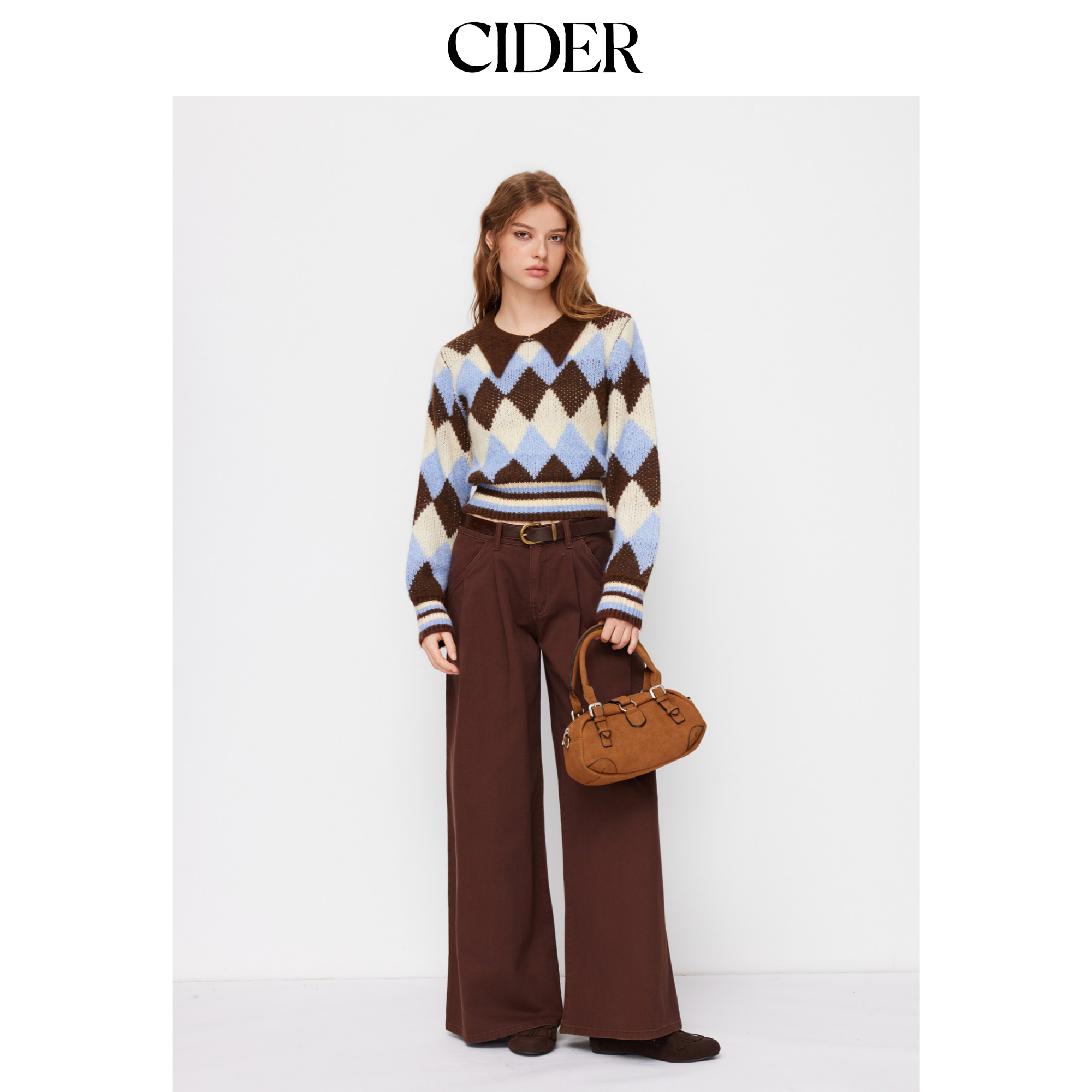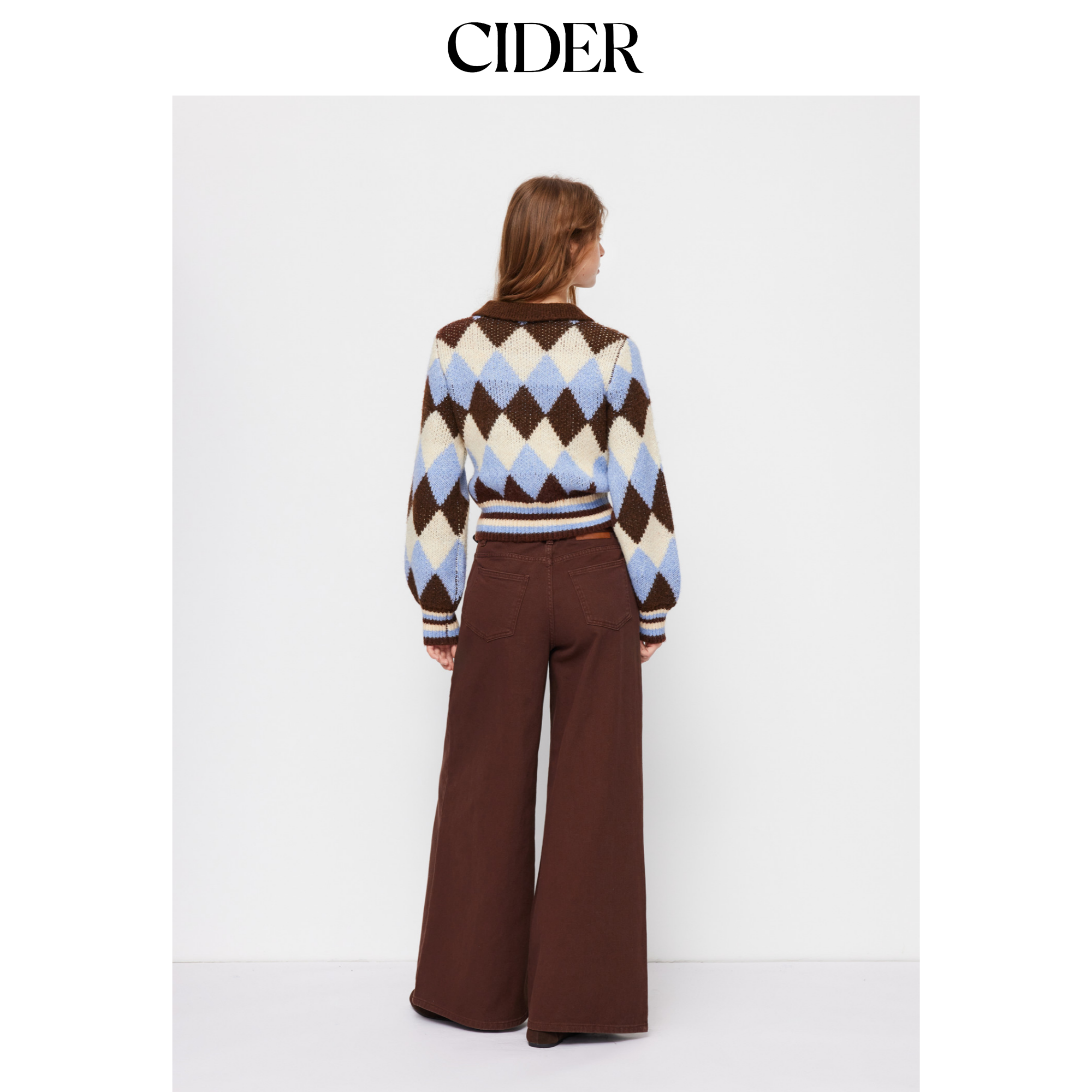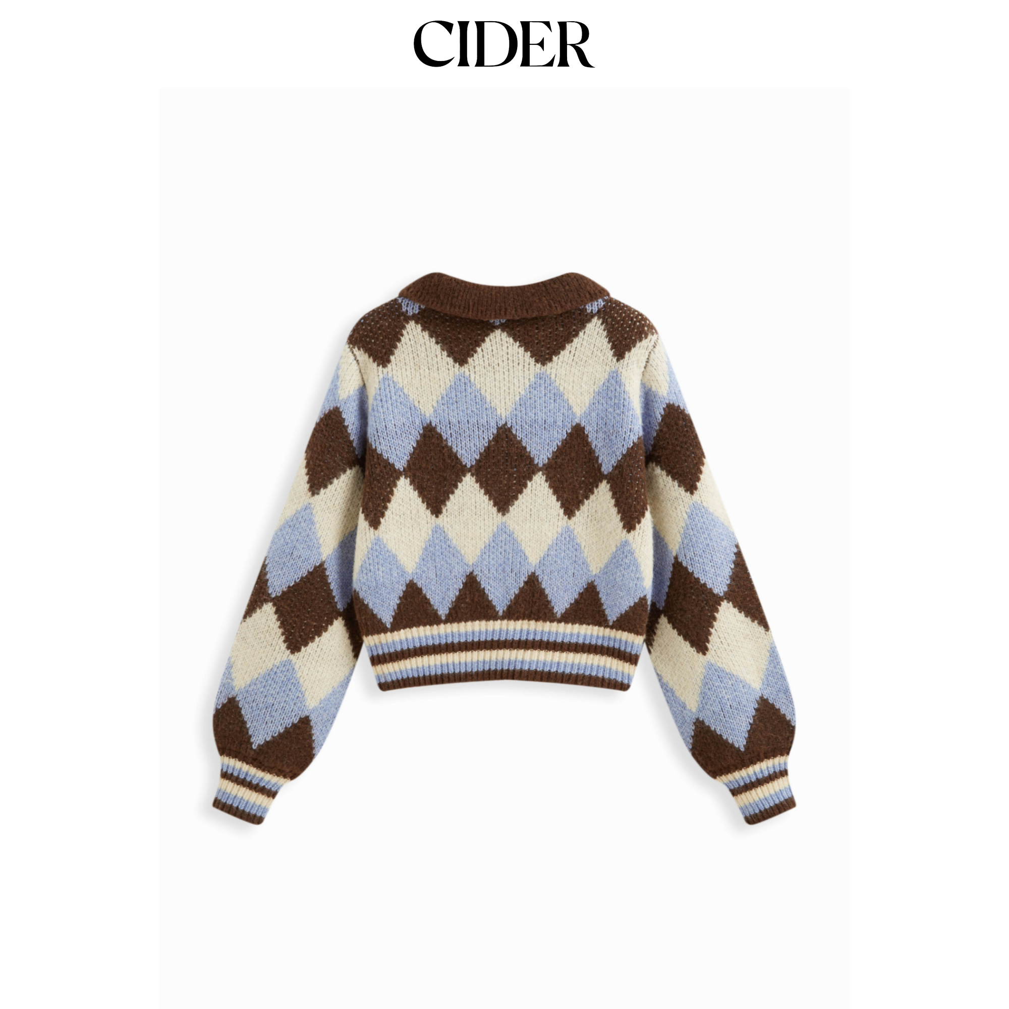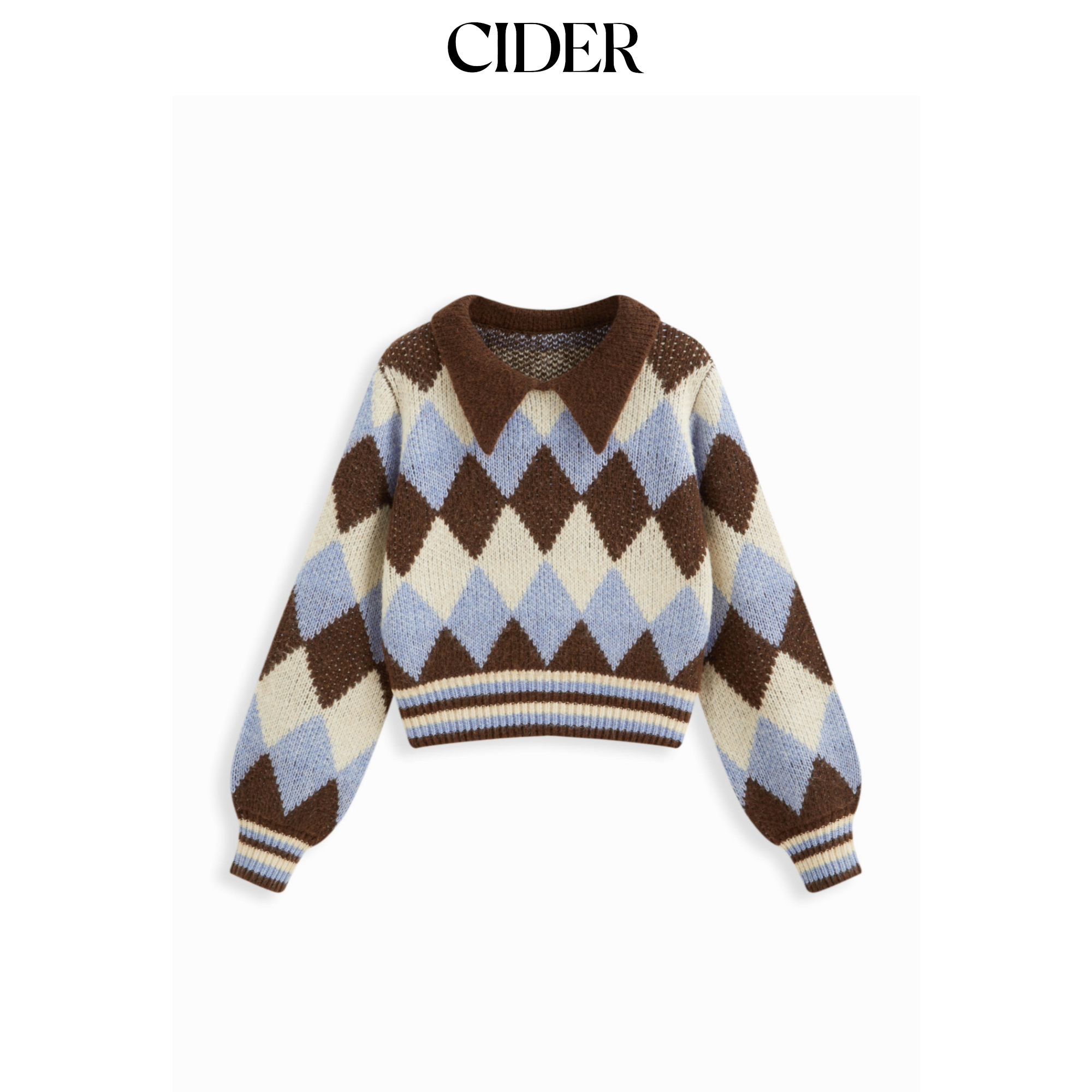 CIDER 秋冬新品女装菱格纹羊毛翻领长袖上衣114864985