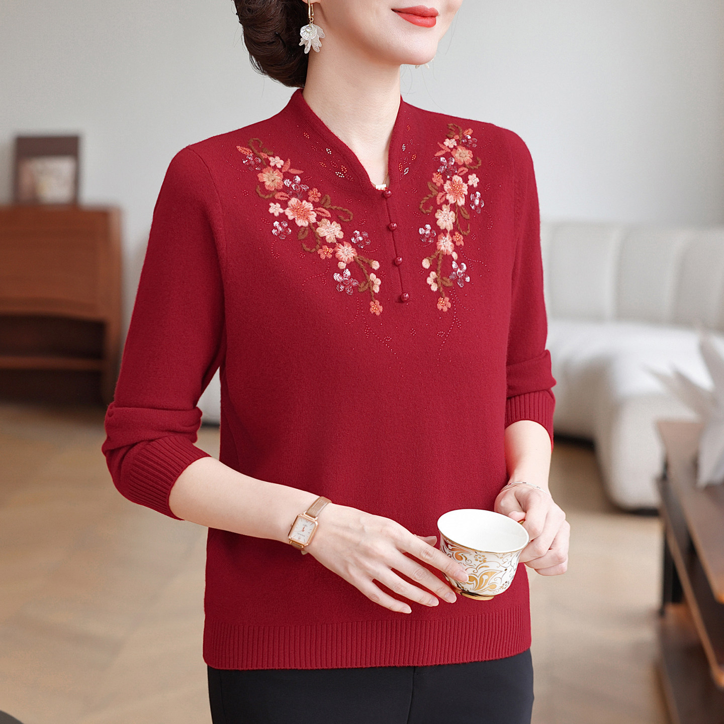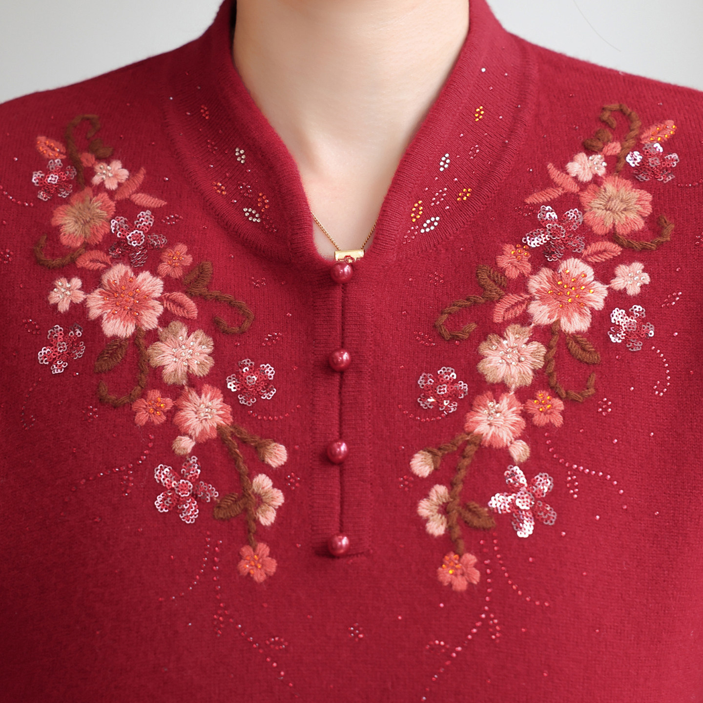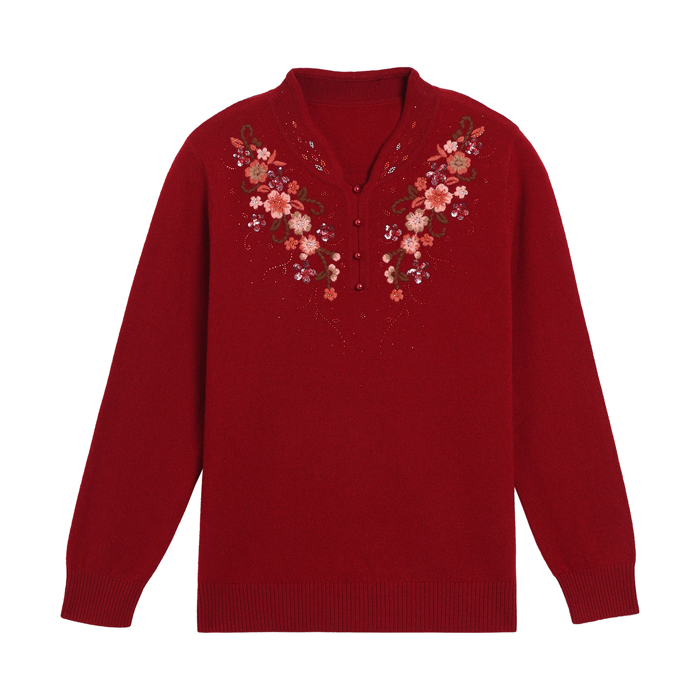 恒源祥针织衫女士100%羊毛衫秋冬中老年妈妈装打底衫新品妈妈衣服