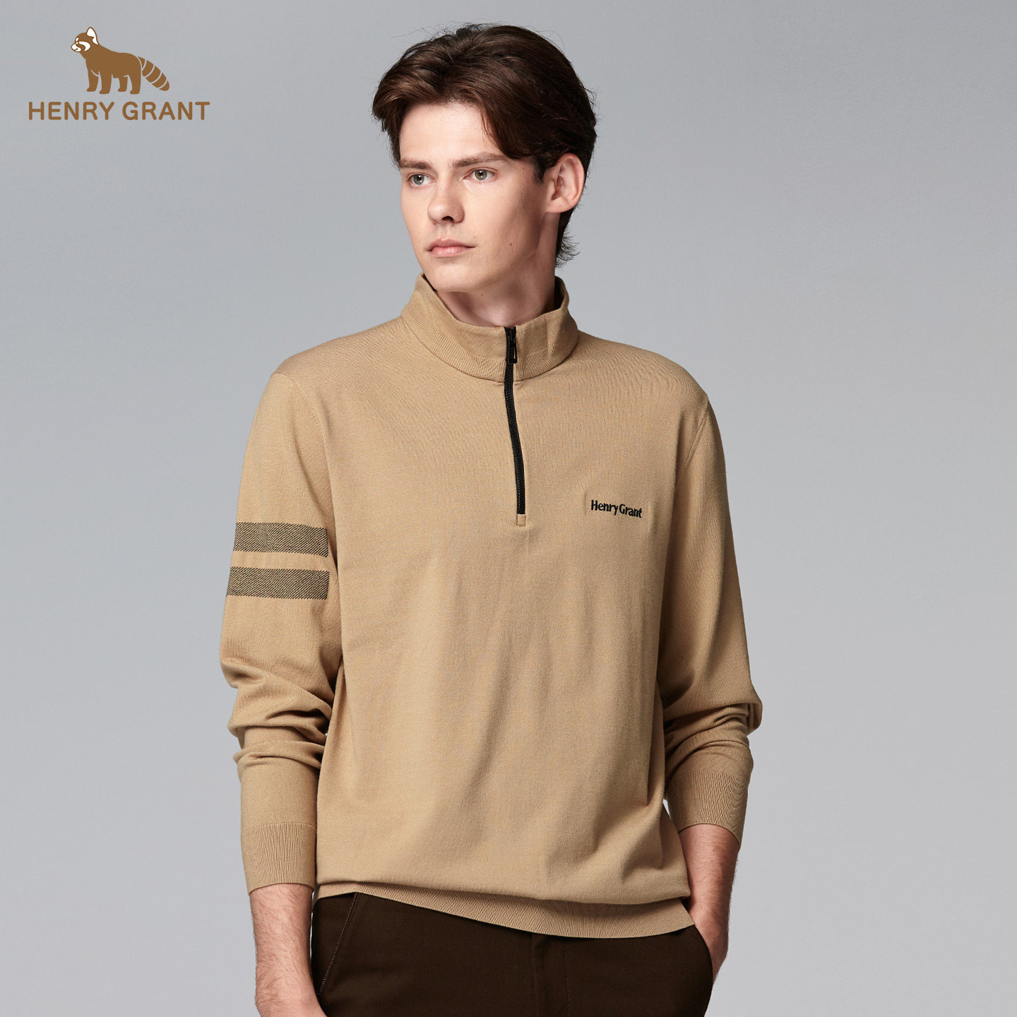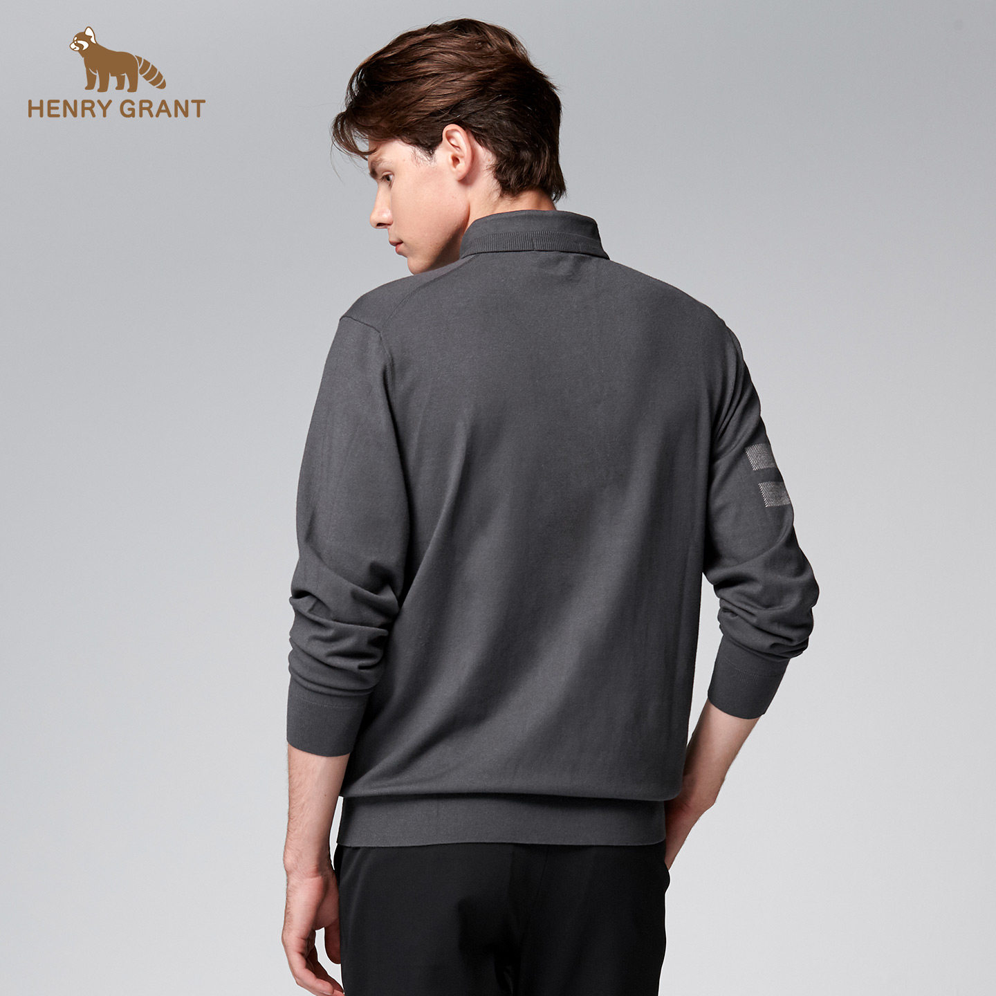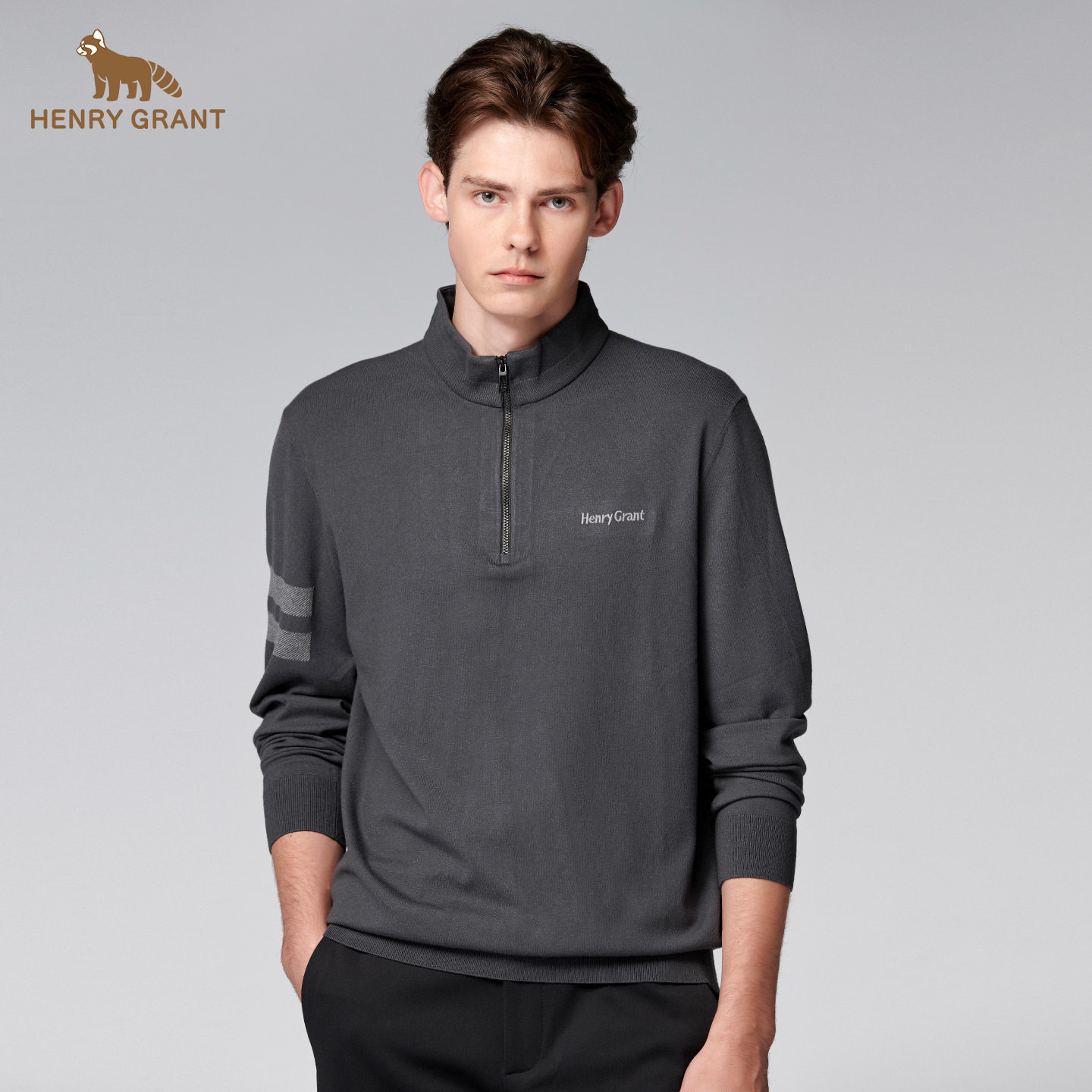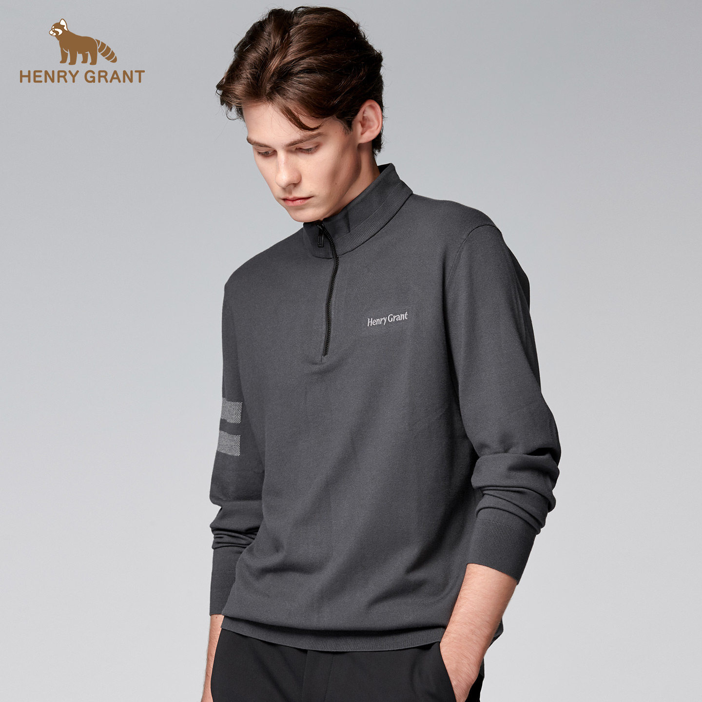 亨利格兰秋冬新品 男士英伦运动半开襟长袖针织衫百搭简约卫衣t恤