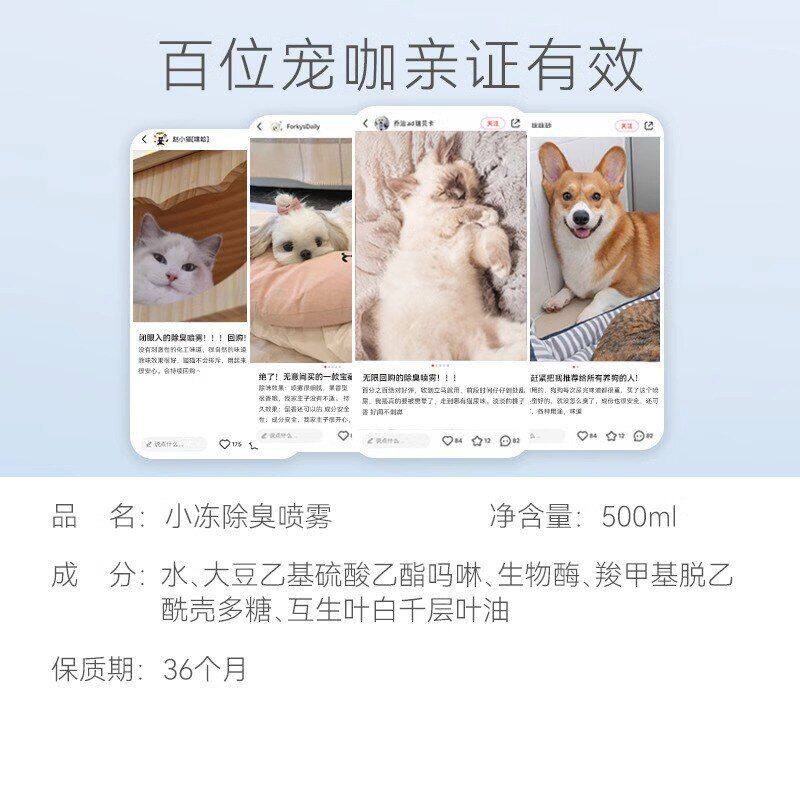 小冻除臭喷雾猫咪狗狗猫舍猫砂除臭剂生物酶除味剂室内宠物消毒水