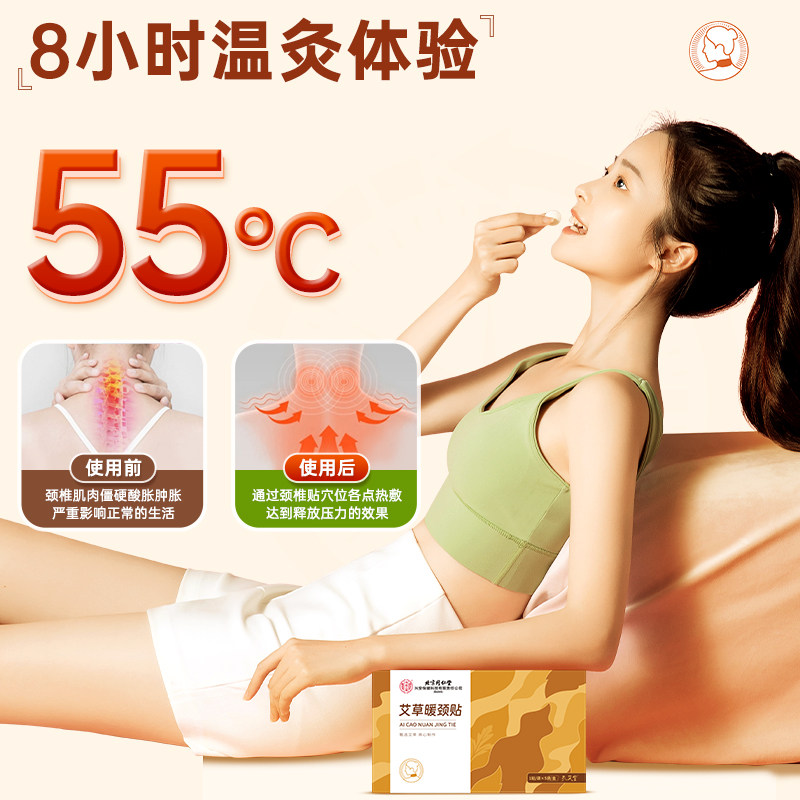北京同仁堂艾草暖颈贴自发热颈椎肩颈部热敷贴护颈脖子舒缓艾灸贴